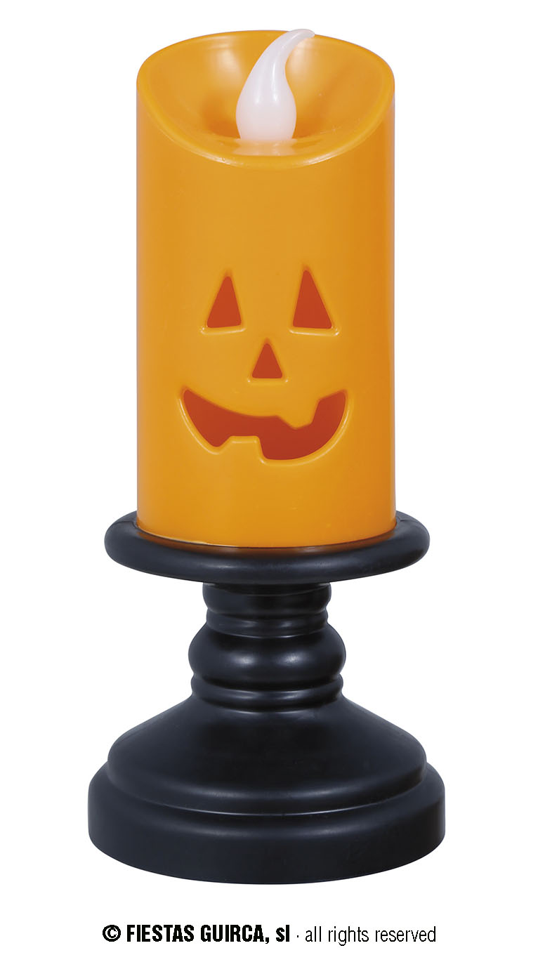 Posizionare il candela di zucca con supporto al centro del tavolo e usalo illuminando sul Cena di Halloween, con la sua luce fioca darà un tocco molto cupo alla candela nel Halloween.