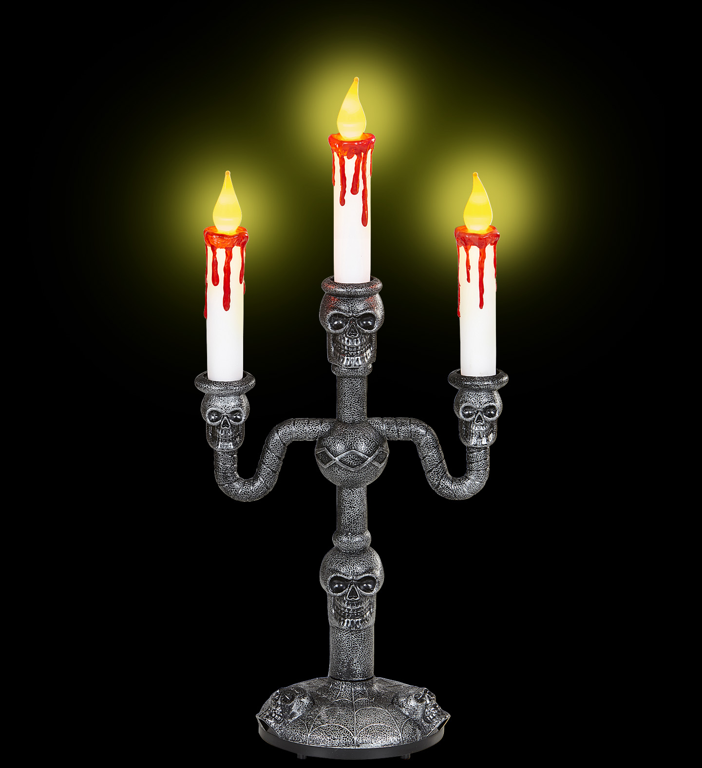 CANDELABRO TESCHI CON 3 CANDELE SANGUINANTI LUMINOSE 18 x 40 cm accessori Decorazioni per adulti halloweenInformazioni aggiuntive