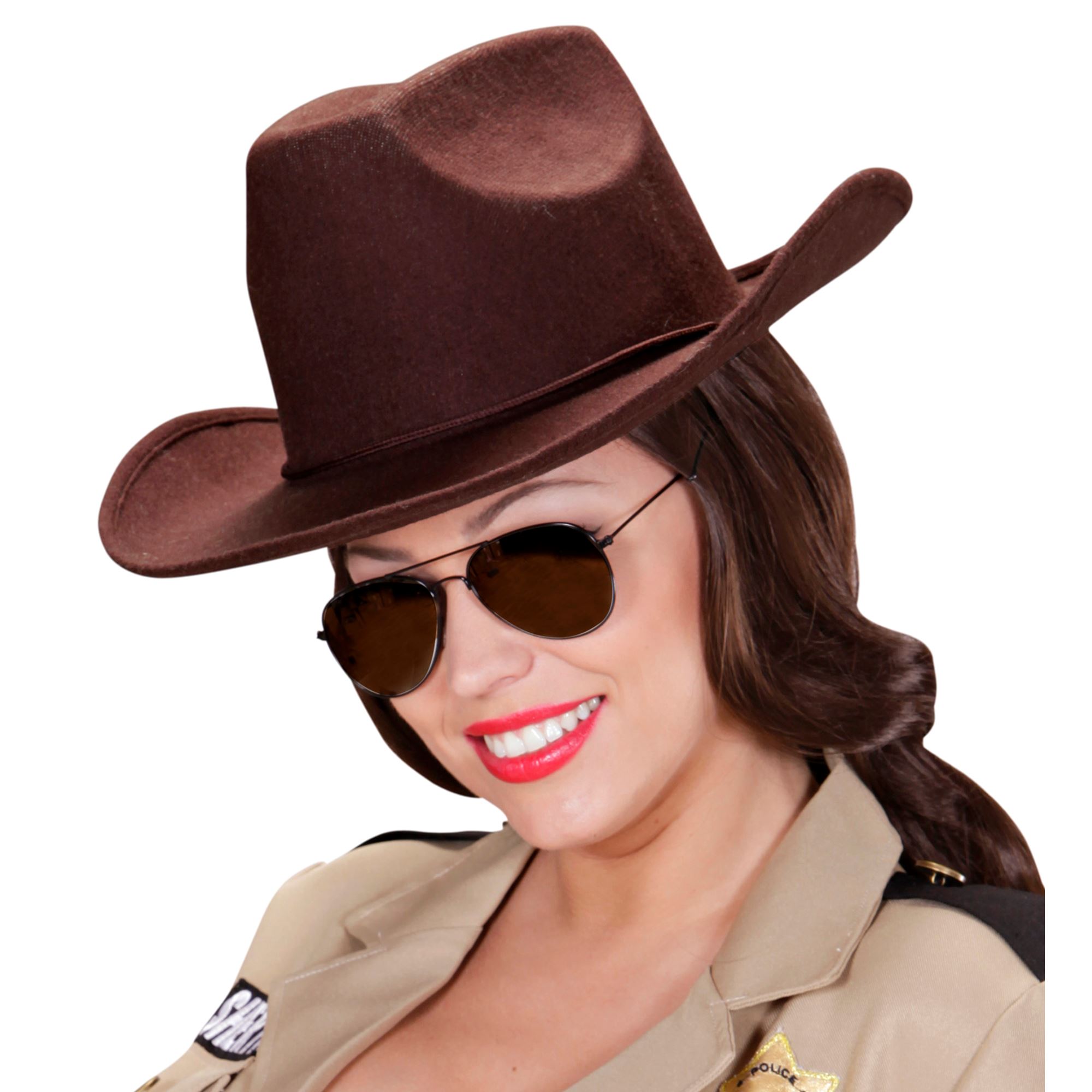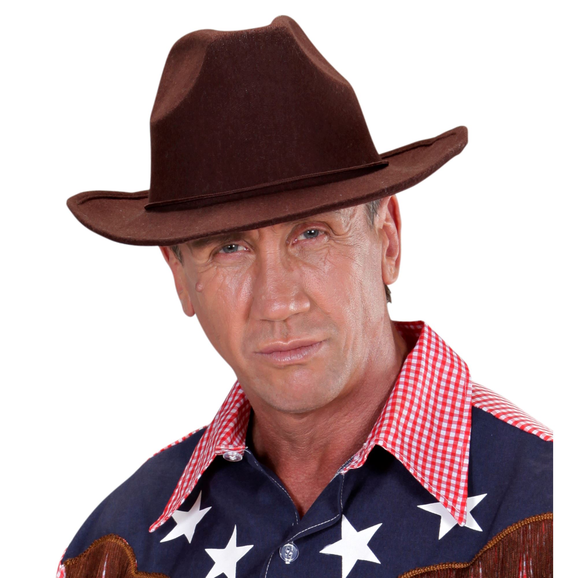Cappello Cowboy in feltro spazzolato marrone con stemma argento.