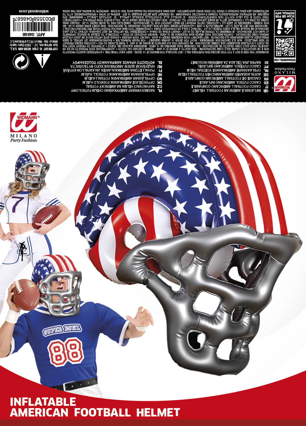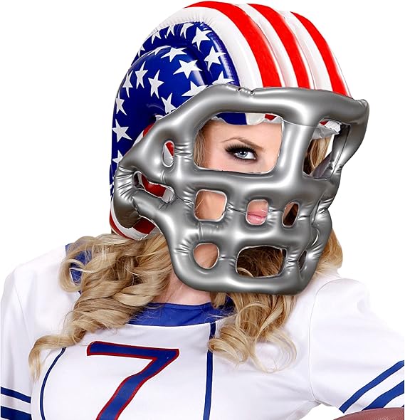 Accessorio casco football americano a stelle& strisce gonfiabile misura adulto ideale per carnevale, tutte le feste in maschera e a tema football americano.