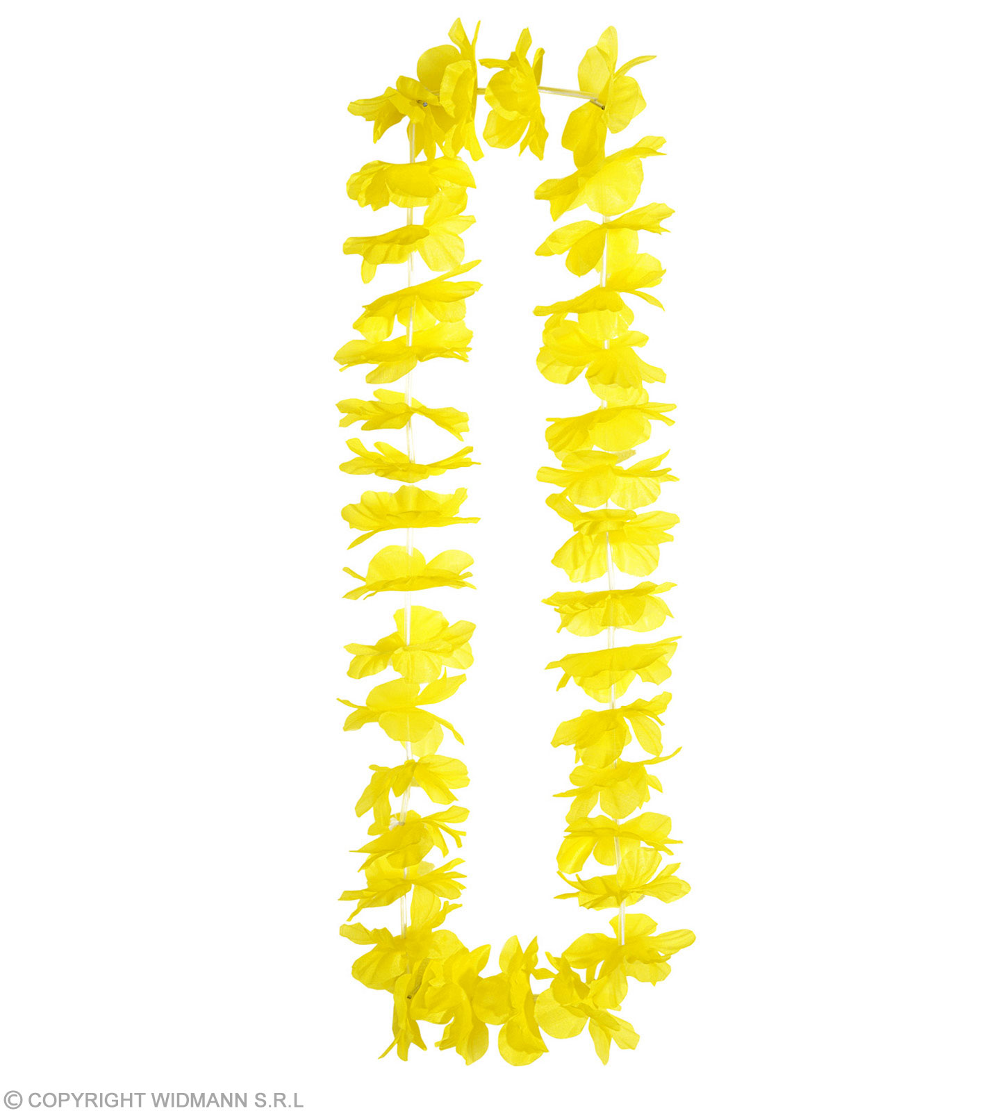 Questa collana di fiori hawaiani di benvenuto è gialla e misura circa 50 cm di lunghezza. Ogni fiore, invece, misura 6 cm.