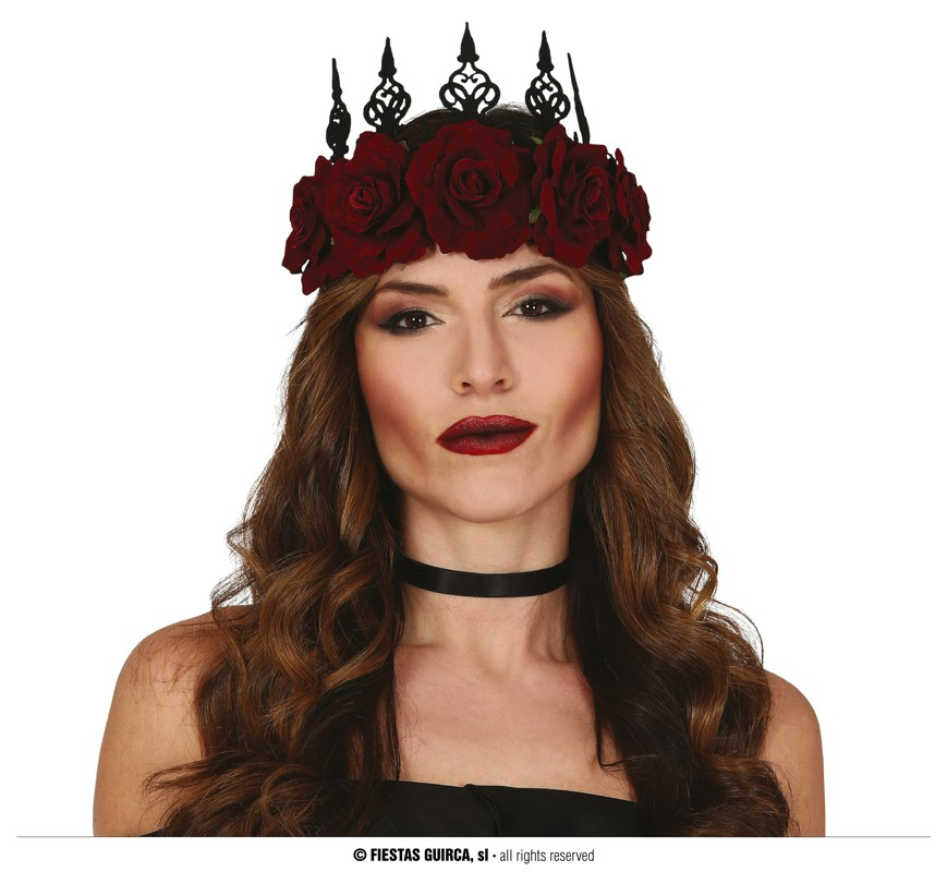 Corona gotica diadema fiori bordeaux e nero regina cattiva