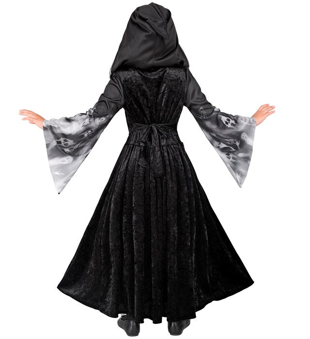 - Costume spaventoso per bambini: abito nero con cappuccio e fantasma spaventoso per Halloween, feste spaventose o travestimenti cupi