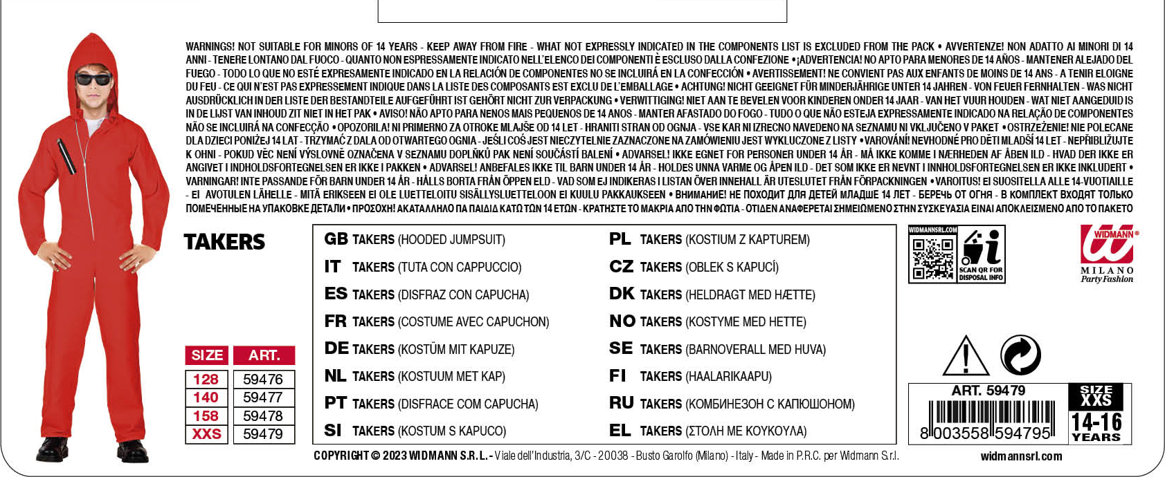 Con questo costume della ditta Widmann, il tuo bambino si trasformerà in un ladro provetto- Il costume è disponibile per bambini di taglia 128 – 140 – 158 – 164
