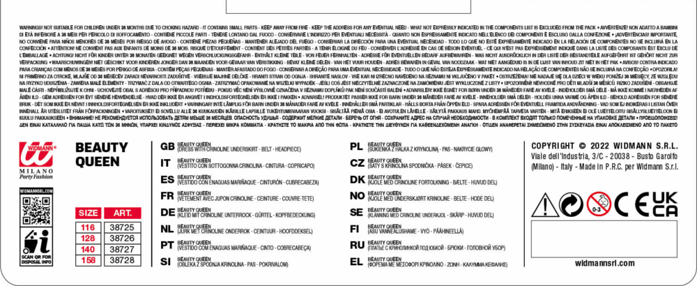 La confezione comprende: vestito con sottogonna, cintura, copricapo. Sono esclusi gli accessori non menzionati.
