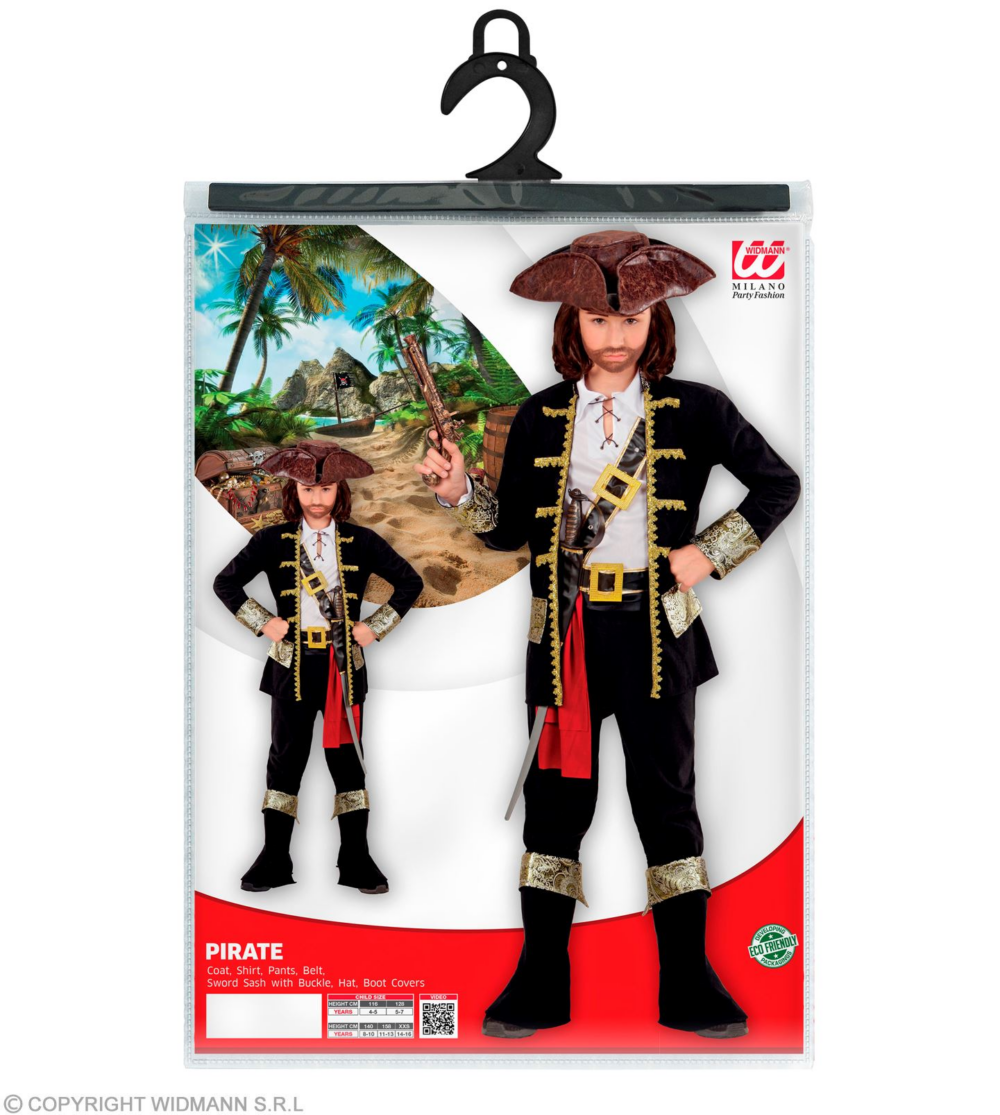 WIDMANN COSTUME PIRATA. La confezione comprende: casacca, camicia, pantaloni, cintura, portaspada con fibbia, cappello, copristivali. Sono esclusi gli accessori non menzionati.