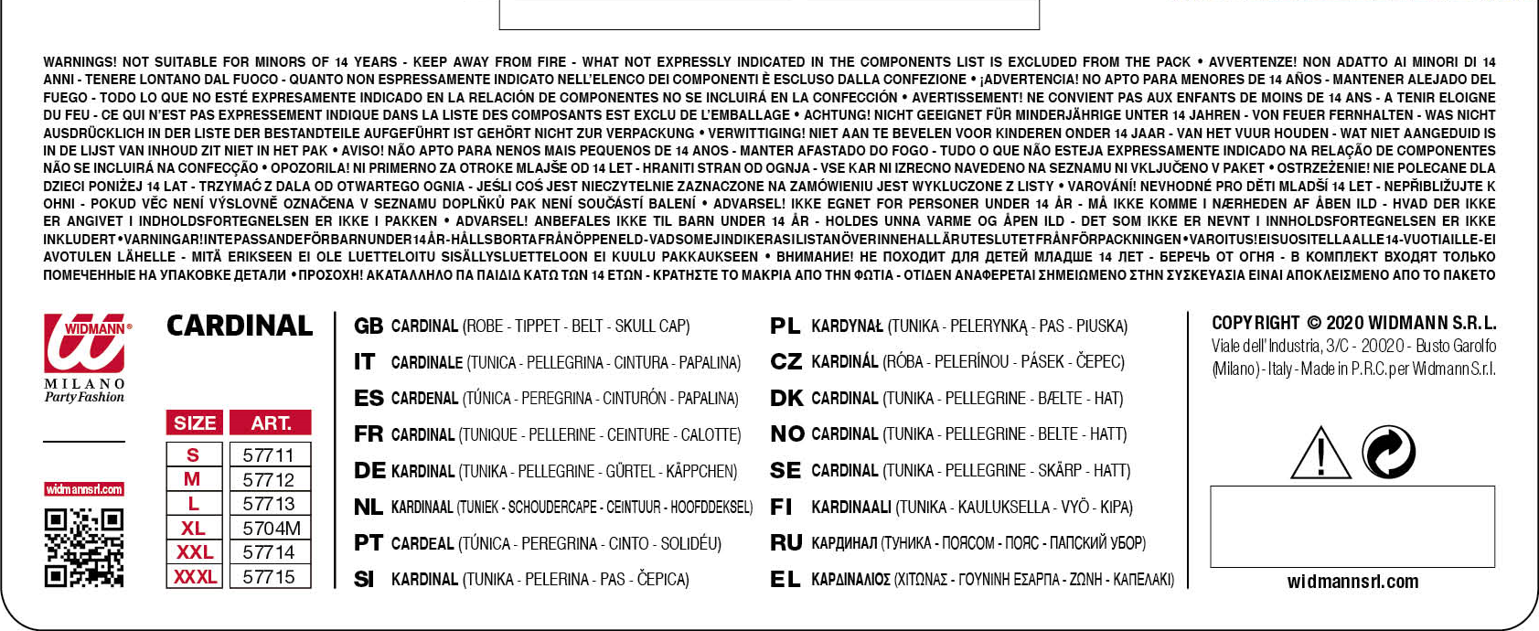 La confezione comprende:tunica, pellegrina, cintura, papalina. Sono esclusi gli accessori non menzionati.