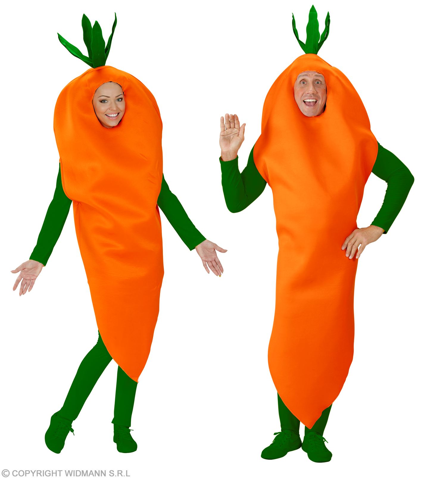 Questo costume da carota consiste in una tuta arancione decorata con 2 inserti a forma di foglia (maglia e pantaloni non inclusi).Un costume davvero simpatico per non passare inosservati.
