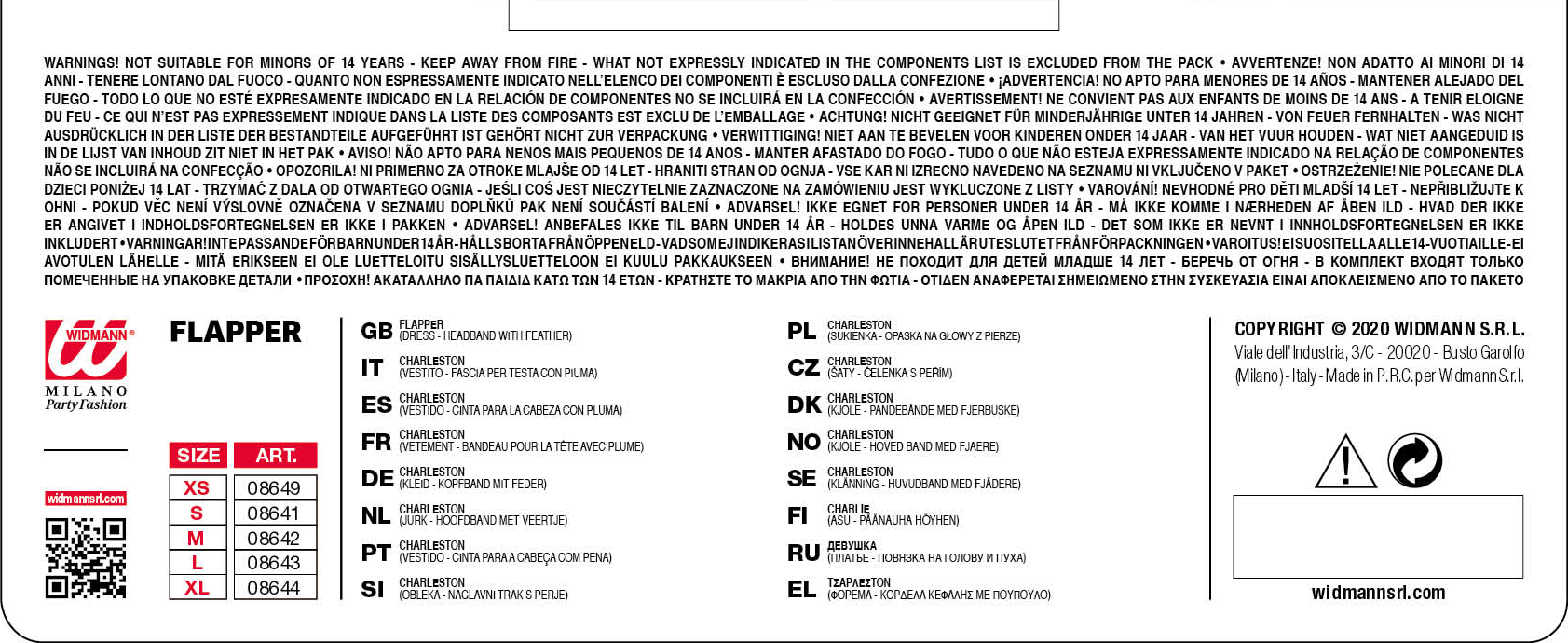 La confezione comprende: vestito, fascia per testa con piuma. Sono esclusi gli accessori non menzionati.