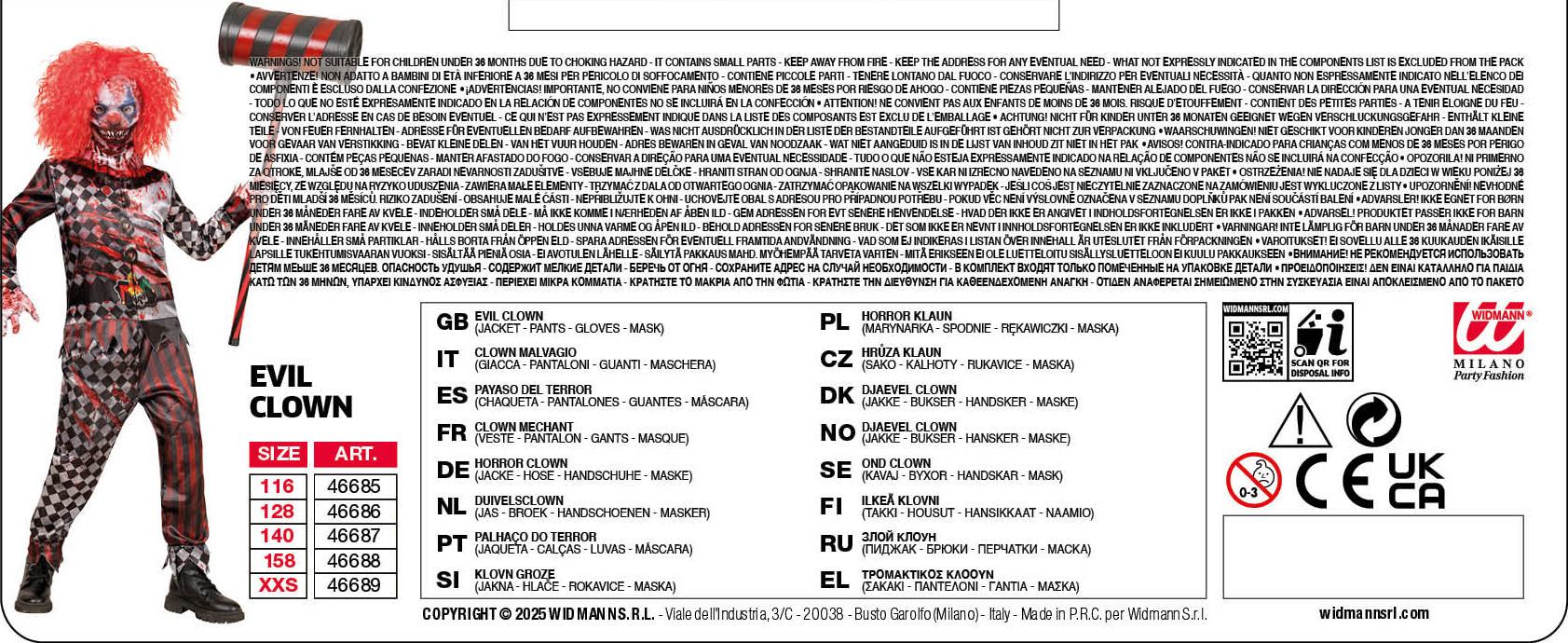 • Look horror realistico: la maschera insanguinata con denti affilati, abbinata al motivo arlecchino e ai guanti macchiati di sangue, garantisce un’entrata in scena da clown assassino davvero terrificante