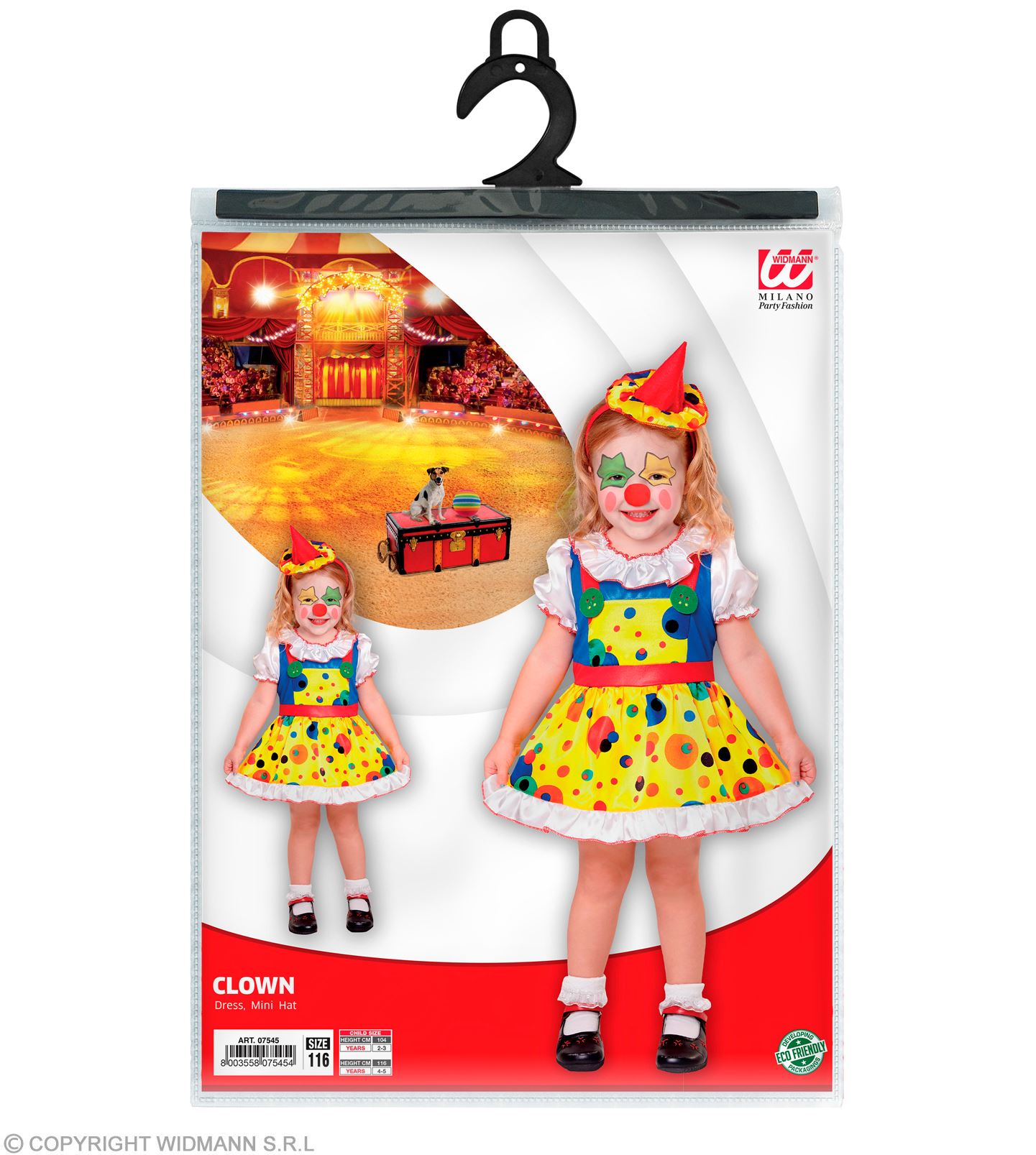 Costume CLOWN GIRL . La confezione comprende: vestito, mini cappello . Sono esclusi gli altri accessori