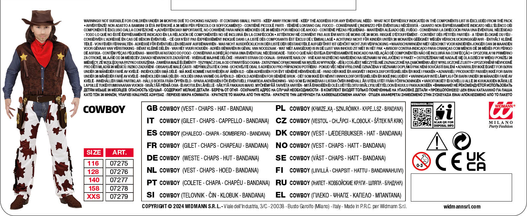 La confezione comprende: gilet, chaps, cappello, bandana Sono esclusi gli accessori non menzionati.