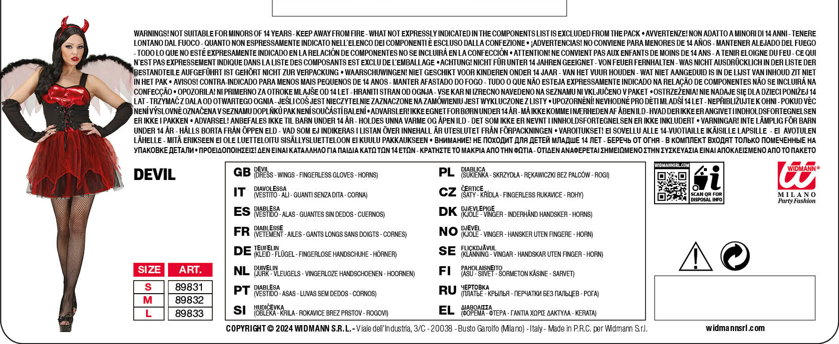Widmann costume DIAVOLESSA . La confezione comprende: vestito, ali, guantisenza dita, corna. Sono esclusi gli accessori non menzionati.