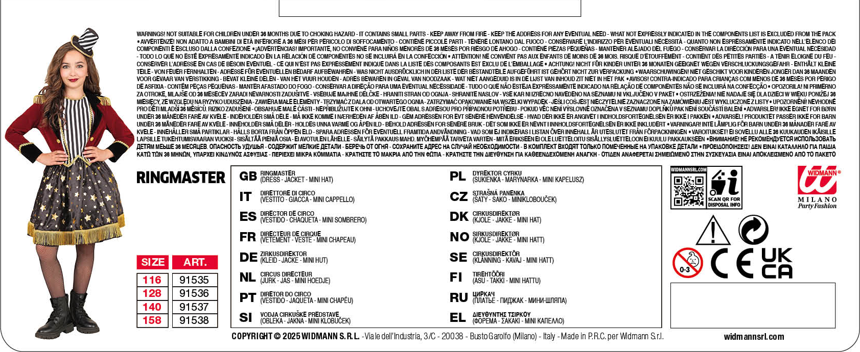 Scendi nell’arena come un vero direttore di circo con questo fantastico costume da circo per bambine !Abito con tutù