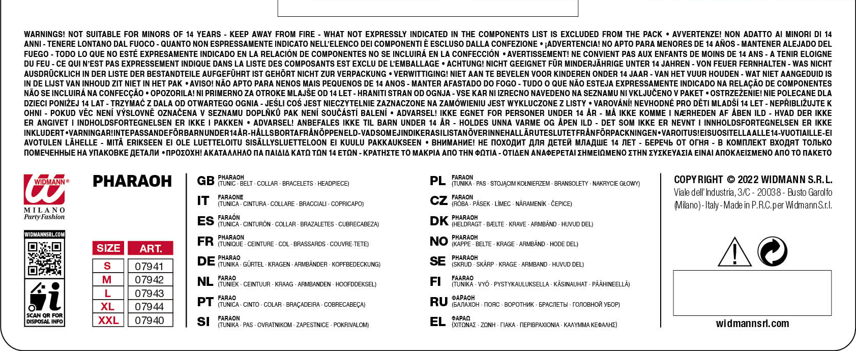 - Articolo taglia S composto da: tunica, cintura, collare, bracciali, copricapo