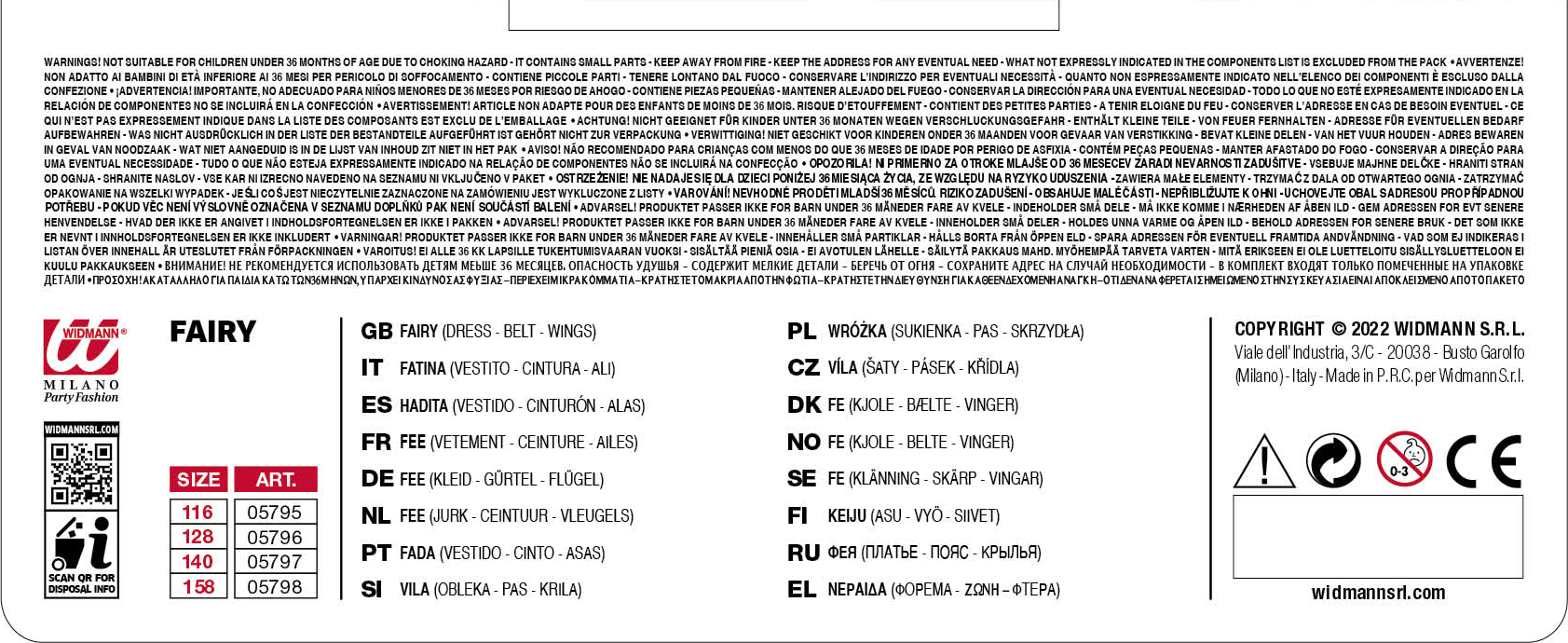 La confezione comprende:vestito, ali. Sono esclusi gli accessori non menzionati.