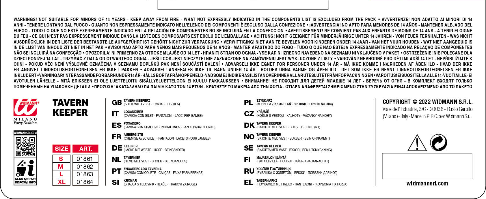 La confezione comprende: camicia con gilet, pantaloni, lacci per gambe. Sono esclusi gli accessori non menzionati.