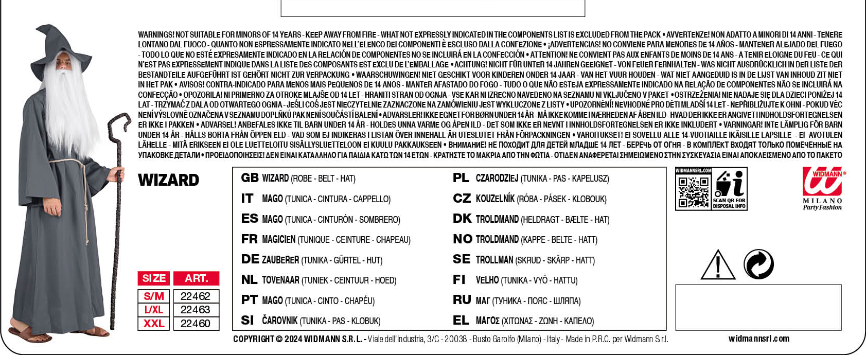 • Taglia: il costume per adulti è disponibile nella taglia S/M