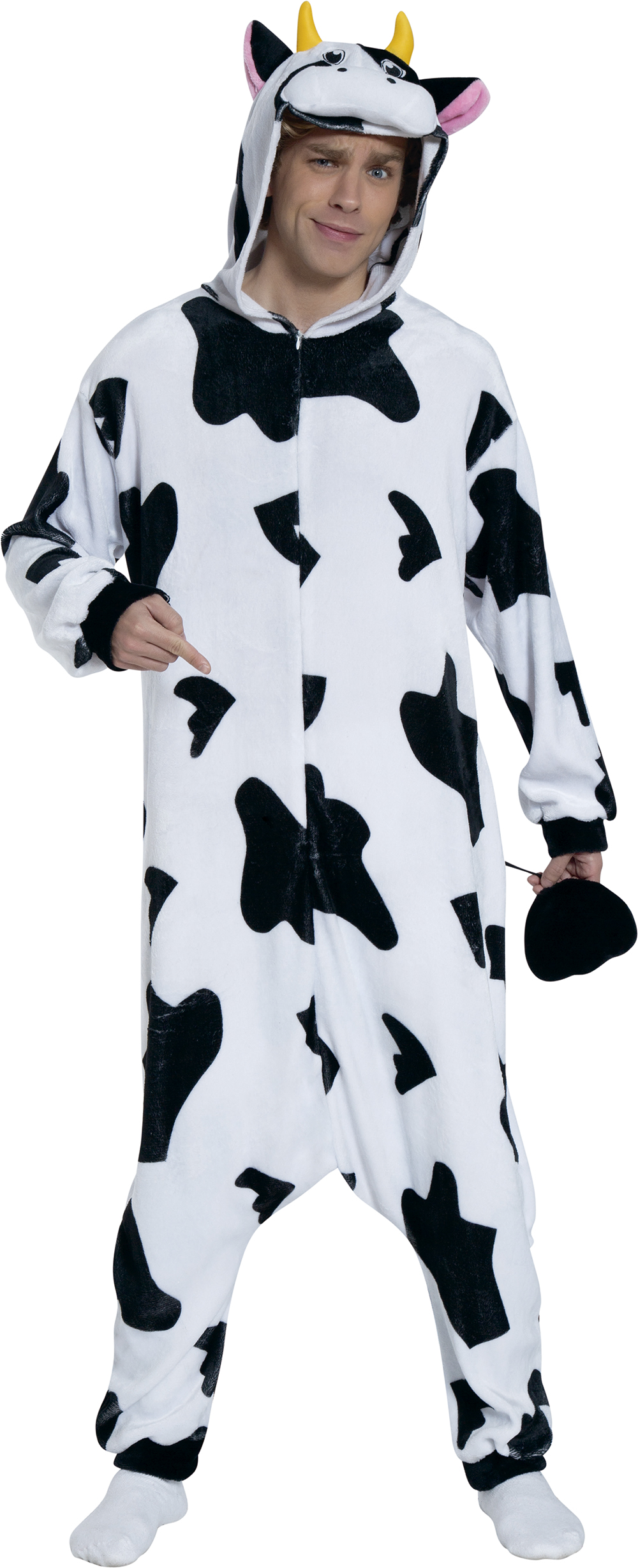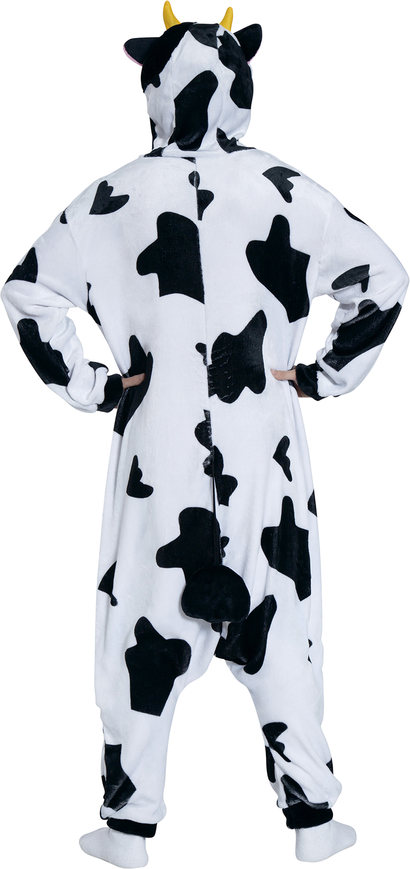 Questo costume da mucca per adulto comprende una tuta con cappuccio. La tuta ampia é bianca con delle macchie nere e il cappuccio rappresenta la testa di una mucca con le corna. Questo costume umoristico é ideale per Carnevale o per una festa a tema.