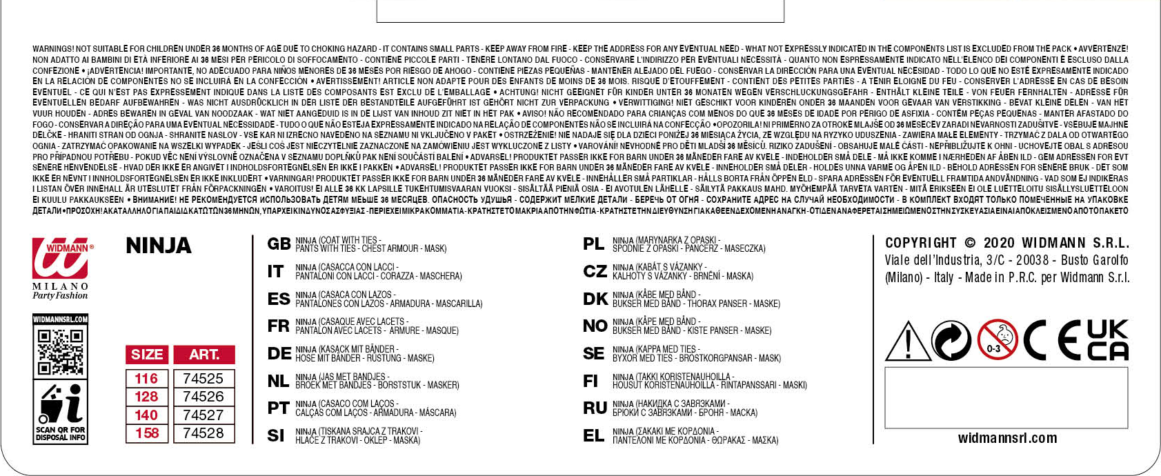 WIDMANN COSTUME NINJA NERO . La confezione comprende: casacca con lacci, pantaloni con lacci, corazza, maschera. Sono esclusi gli accessori non menzionati.