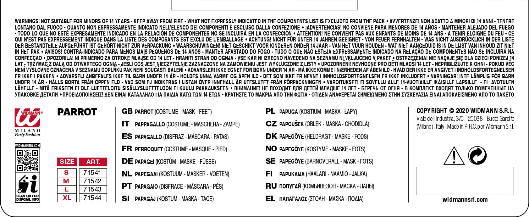 La confezione comprende: costume, maschera, zampe. Sono esclusi gli accessori non menzionati.