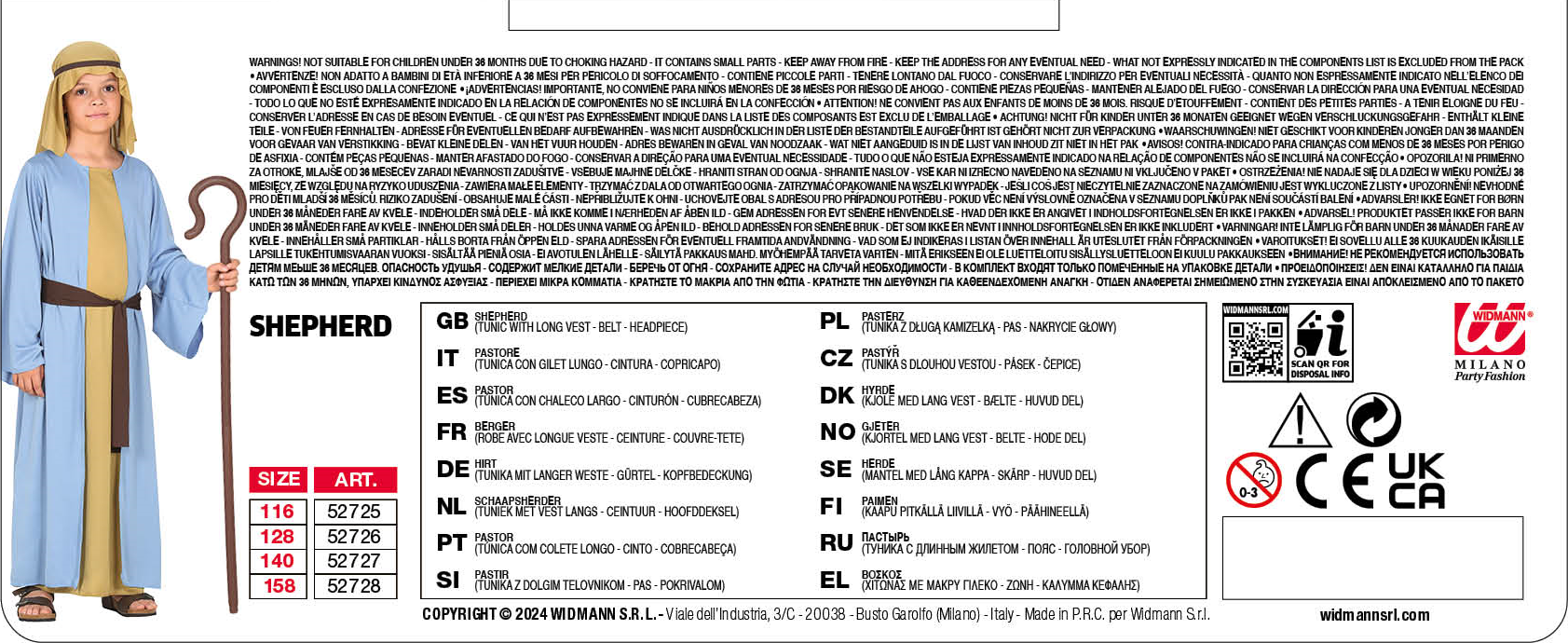 | Taglia | 11 – 13 anni 158 H, 4 – 5 anni 116 H, 5 – 7 anni 128 H, 8 – 10 anni 140 H |