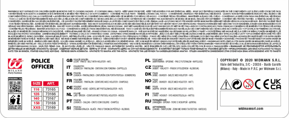 WIDMANN COSTUME POLIZIOTTO . La confezione comprende: casacca, pantaloni, cintura con fondina, cappello. Sono esclusi gli accessori non menzionati.Abito,Travestimento,Carnevale,Comico,Halloween,cosplay