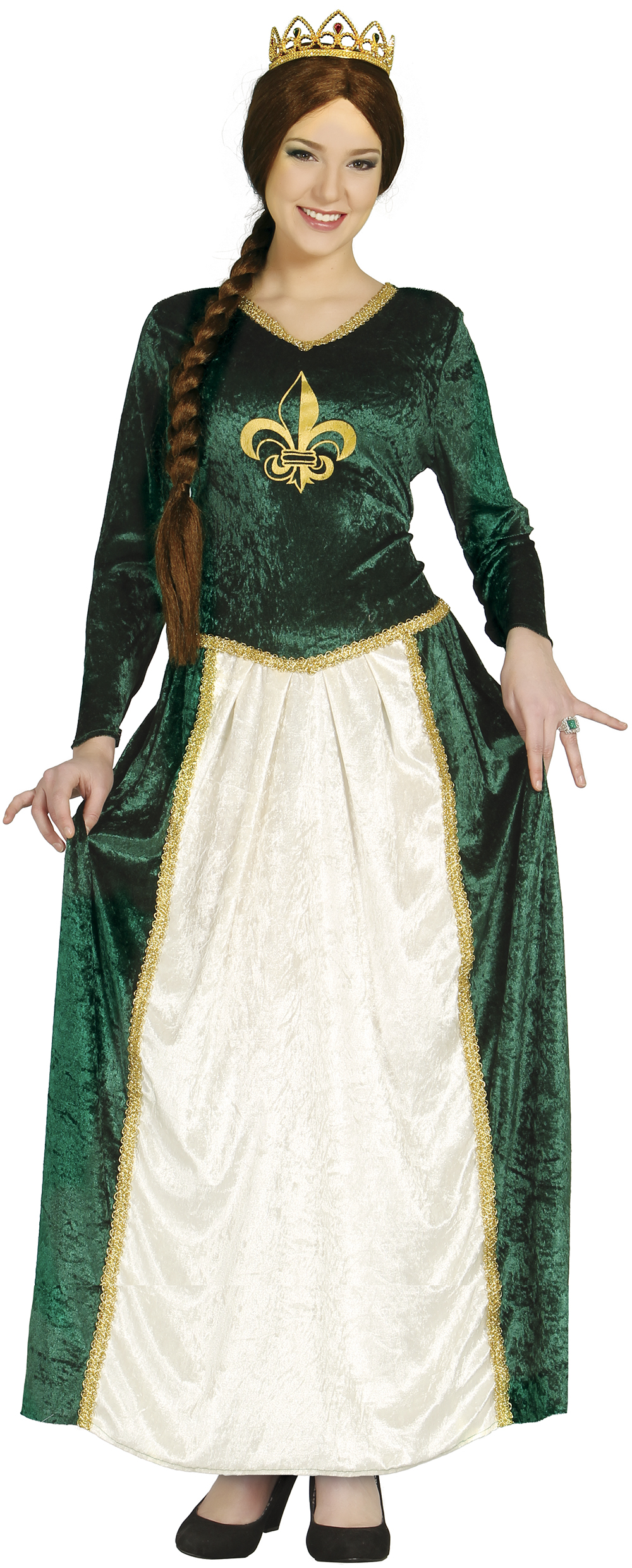 - DIVENTA UNA REGINA MEDIEVALE! – Include l’elegante abito verde con dettagli dorati. Non include la corona, la parrucca né gli accessori. Preparati a brillare alla tua prossima festa medievale!