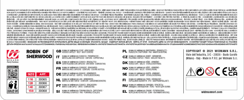 Con questo set di costumi, l azienda Widmann, il vostro figlio si trasforma in un attimo nel famoso Robin of Sherwood. Nella confezione sono inclusi la parte superiore, il copribraccia, il mantello con cappuccio, la cintura e i copriscarpi.