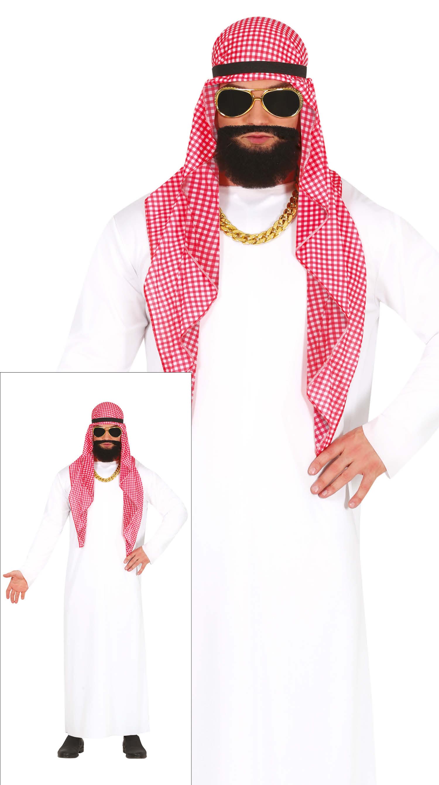 - CONTENUTO di questo costume da sceicco milionario per uomo: Sciarpa, Diadema, Tunica. NON_INCLUDE: Accessori
