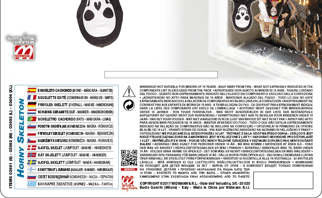 Costume Scheletro Arrapato da Uomo composto da: tuta, guanti, maschera; ideale per travestimenti ad halloween, carnevale, tutte le feste in maschera. Lavare a mano; Non stirare; No candeggina, asciugatrice o lavaggio a secco.Informazioni aggiuntive