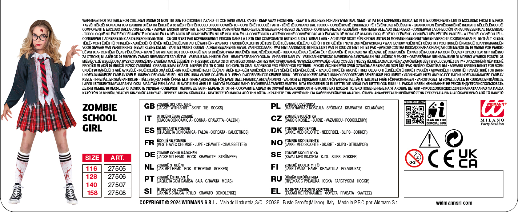 Costume da studentessa bambina zombie