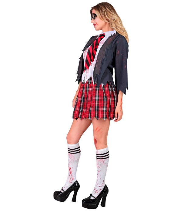 - Spaventoso vestito da studentessa: trasformati in una studentessa non morta con giacca, camicetta cucita, gonna e cravatta in un look aula smarrito