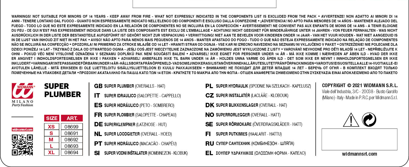| Brand | W WIDMANN MILANO Party Fashion, WIDMANN, WIDMANN MILANO PARTY FASHION |