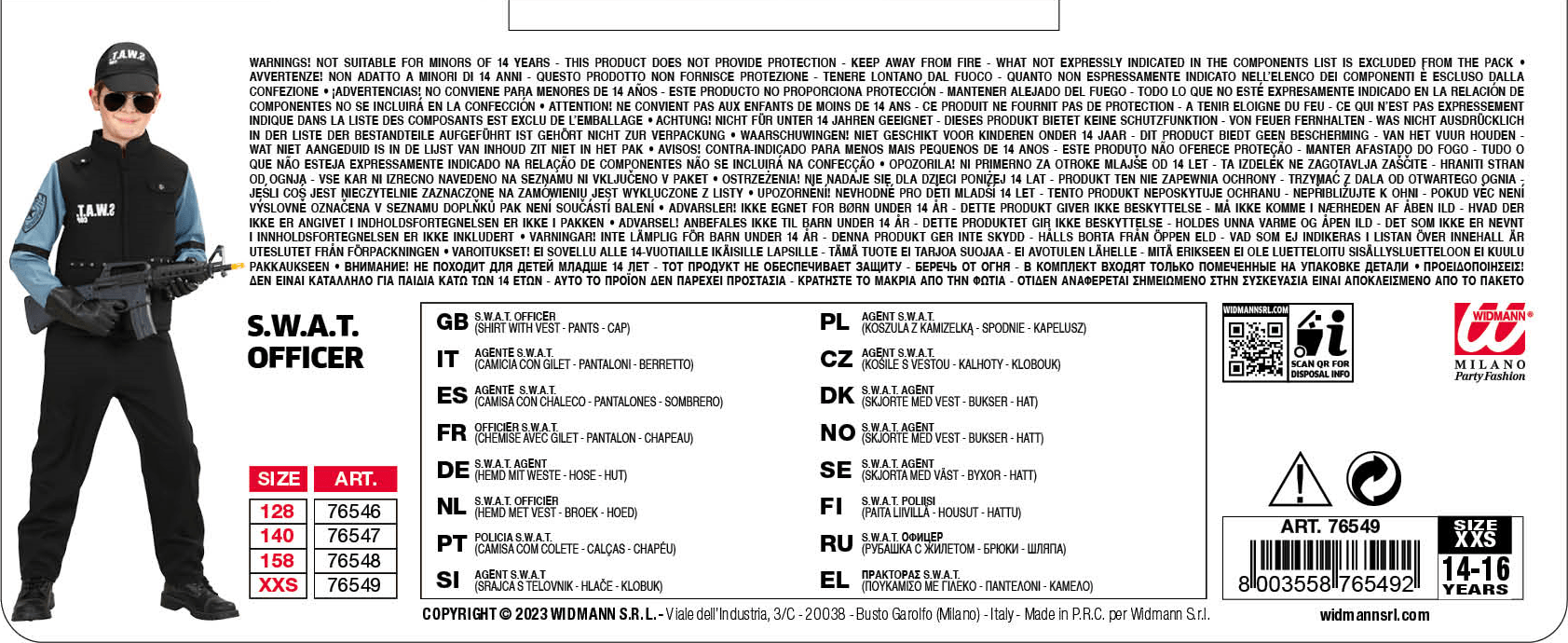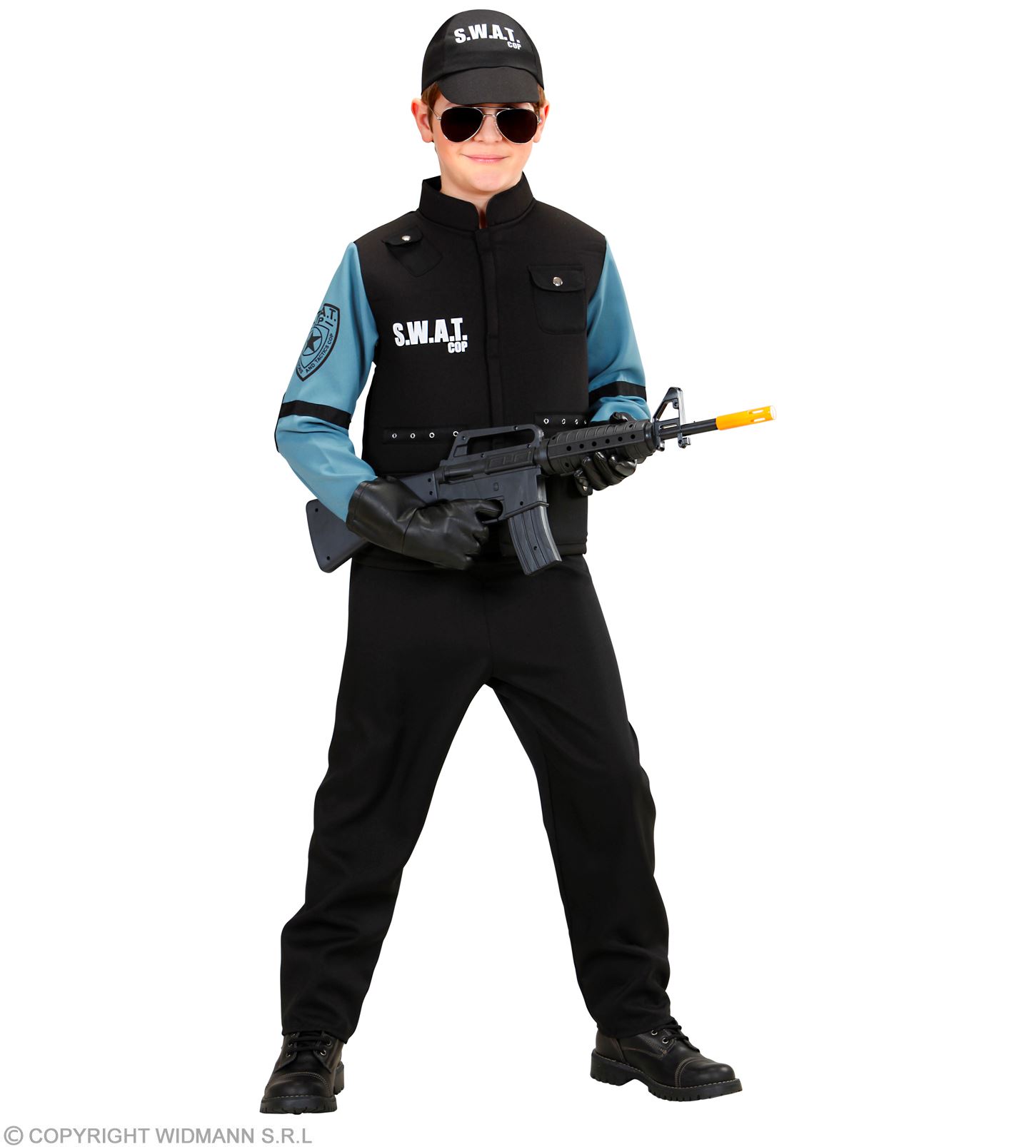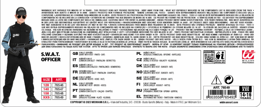 Costume SWAT .La confezione comprende: camicia con gilet, pantaloni, berretto. Sono esclusi gli altri accessoriInformazioni aggiuntive