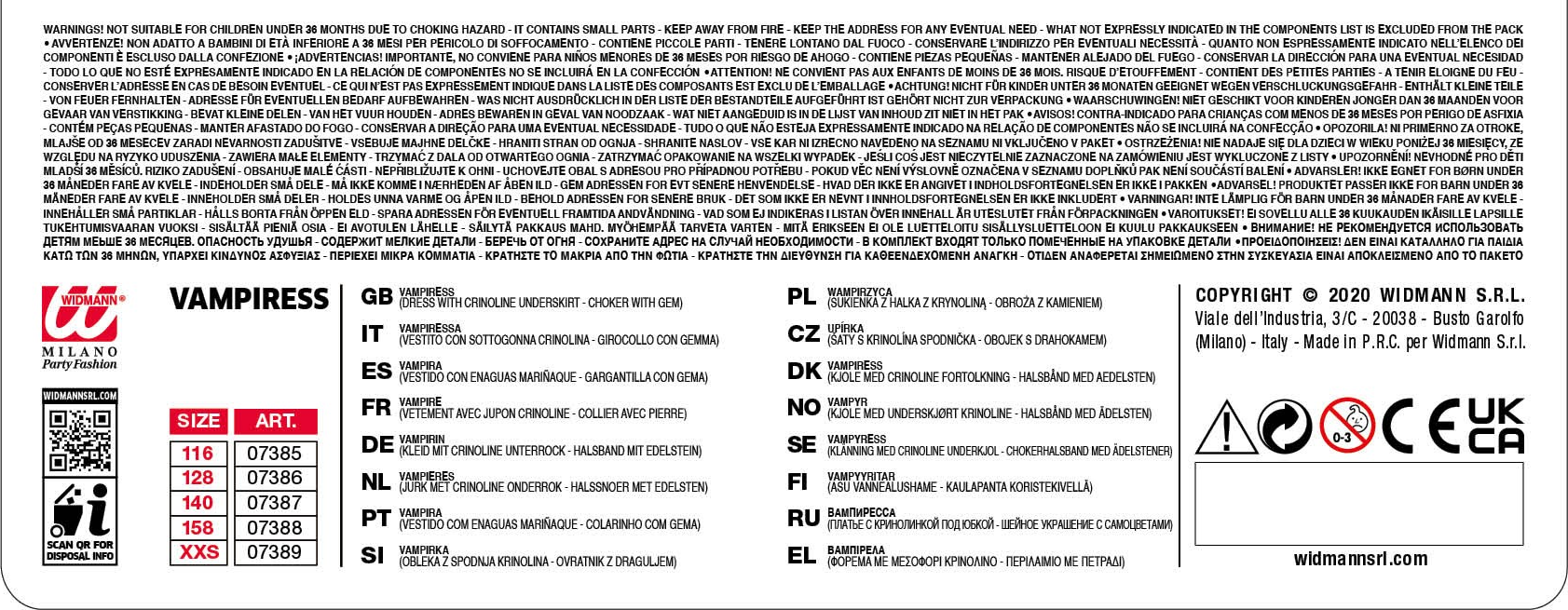 WIDMANN COSTUME VAMPIRESSA . La confezione comprende: vestito con sottogonna crinolina, girocollo con gemma. Sono esclusi gli accessori non menzionati.Abito,Travestimento,Carnevale,Comico,cosplay,Halloween