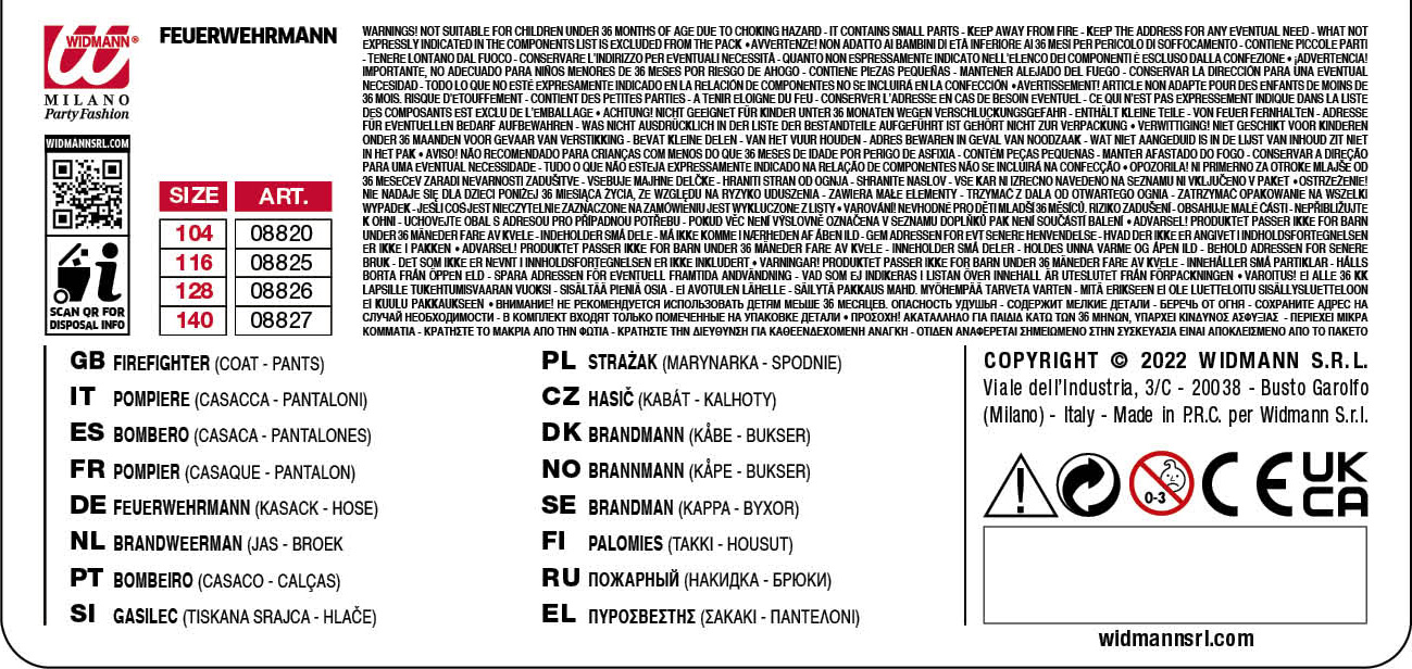 - La fornitura comprende un costume da pompiere per bambini (casco non incluso)