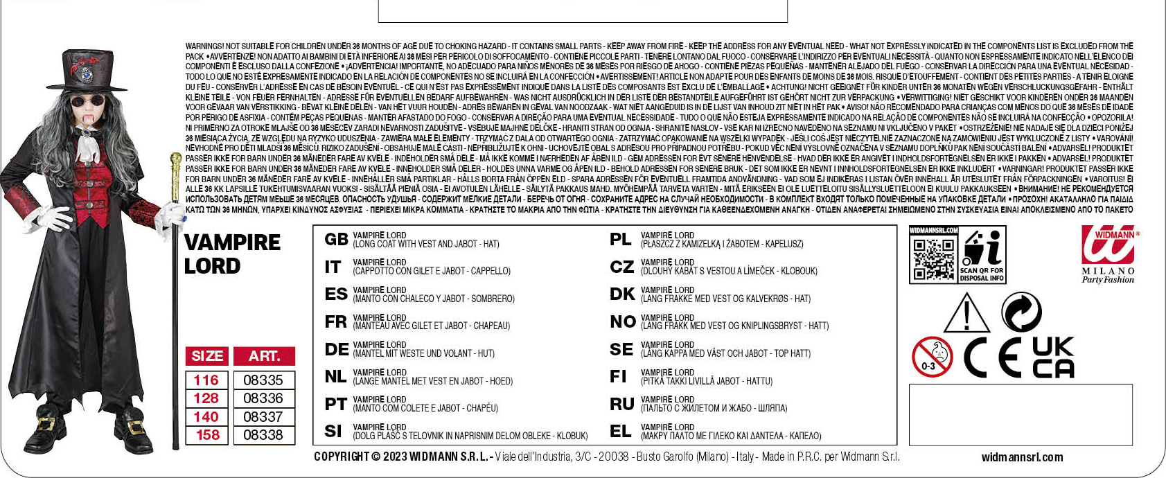 - Il costume è disponibile per bambini nella taglia 128 cm