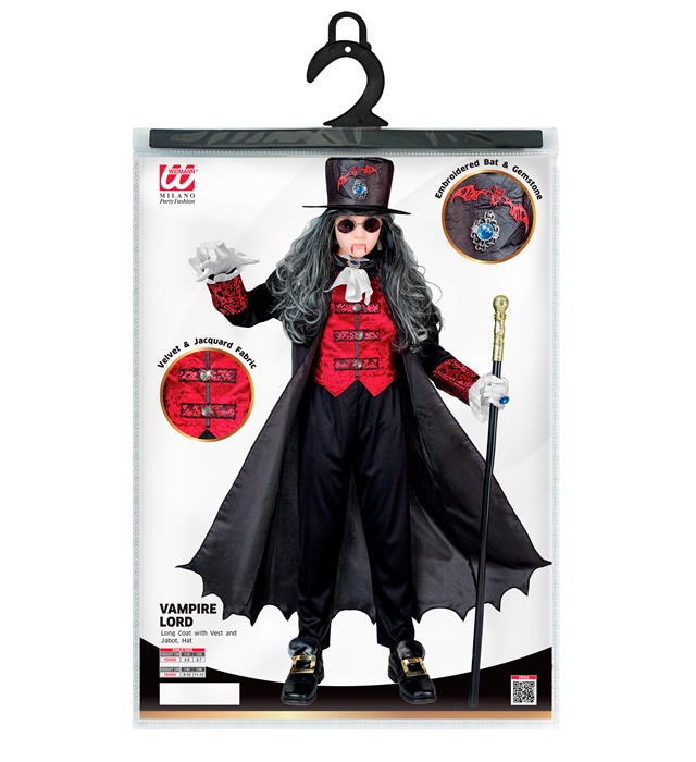 - Con questo set di costume, tuo figlio si trasformerà in un cupo signore dei vampiri