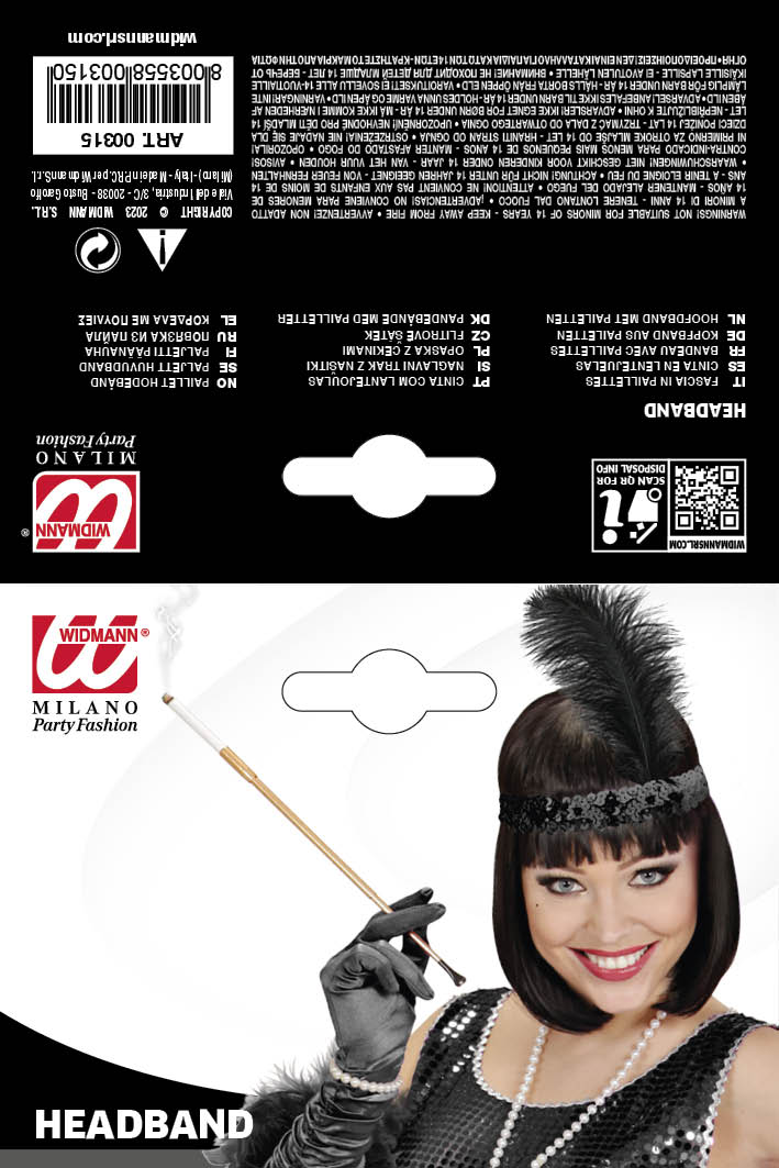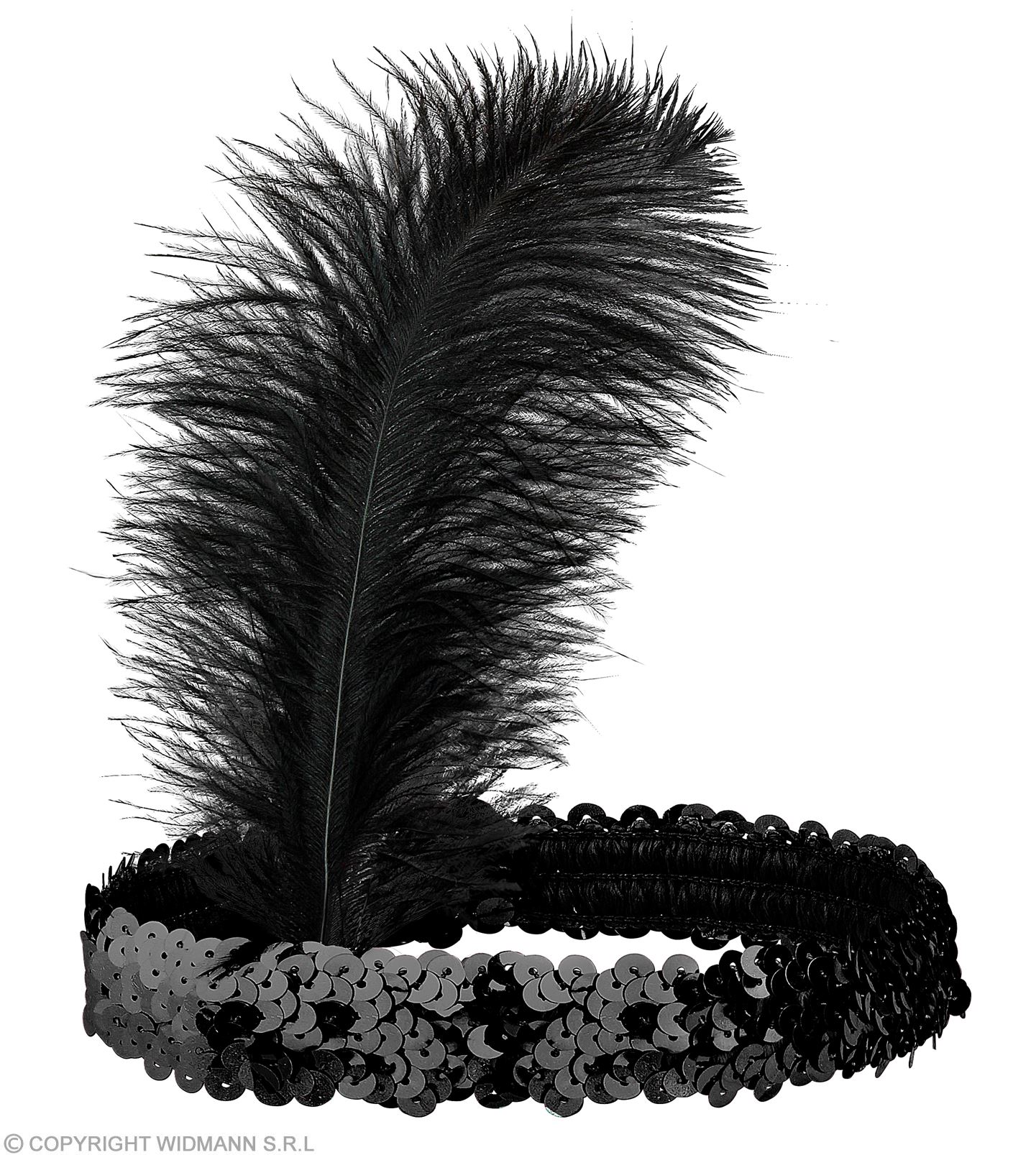 FASCIA PER TESTA IN PAILLETTES NERA CON PIUMA NERAAccessori Abbigliamento per adulti Costumi e accessori travestimenti,cosplay