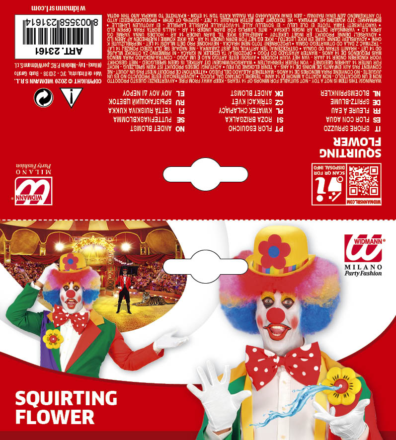 - Ti vesti da clown e sei ancora alla ricerca di un accessorio divertente? Allora questo maxi fiore a spruzzo della ditta Widmann è quello che fa per voi