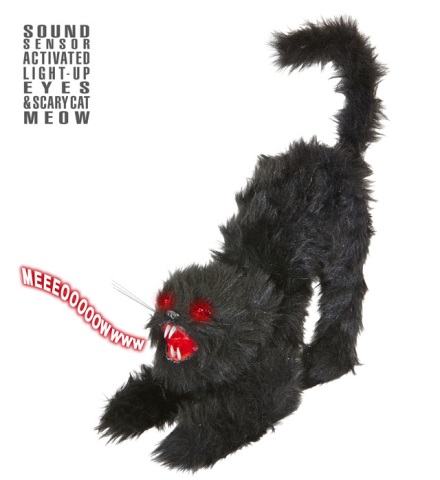 Gatto nero con occhi luminosi e miagolio spaventoso attivato