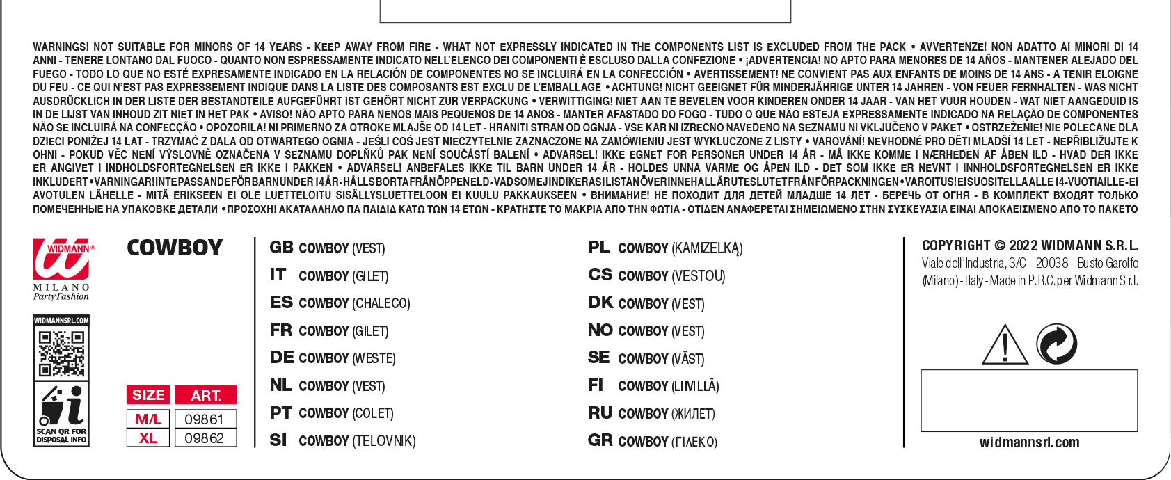 - Varie taglie: disponibile nella taglia M/L, la giacca da cowboy Widmann si adatta a un’ampia gamma di forme del corpo, garantendo una vestibilità comoda e lusinghiera per tutti gli uomini che vogliono incarnare lo stile da cowboy con sicurezza ed eleganza