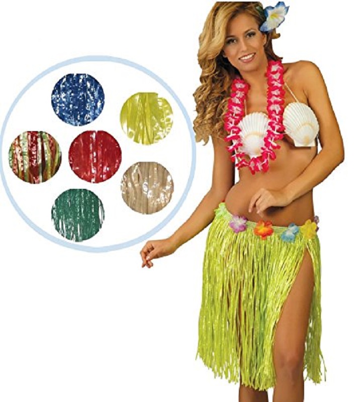 Gonna hawaiana hawaii con fiori colore verde 55 cm