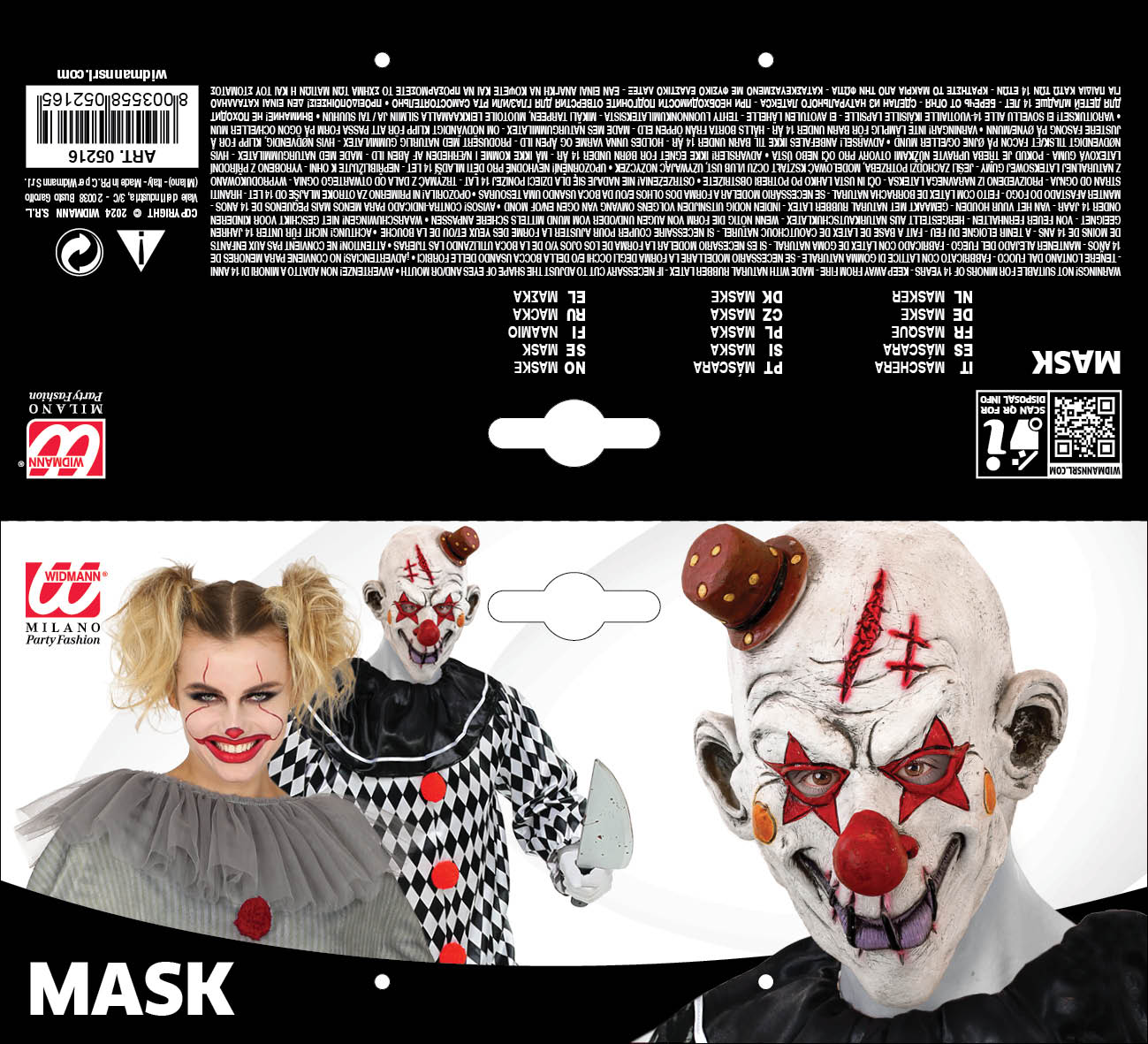 - Look da clown scioccante: maschera in lattice inquietante con tratti del viso cattivi, occhiaie rosse a forma di stella e sorriso minaccioso