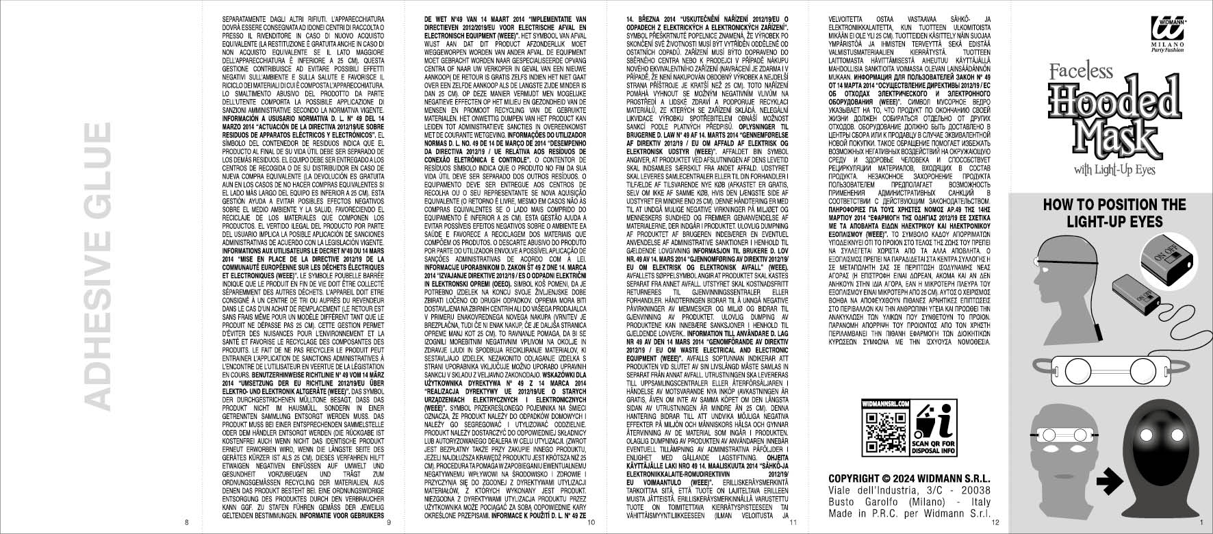 - Ha occhi bianchi luminosi che possono essere accesi e spenti