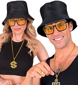 - Gli occhiali da party colpiscono per le loro lenti gialle e sottolineano perfettamente il look iconico degli anni ’90