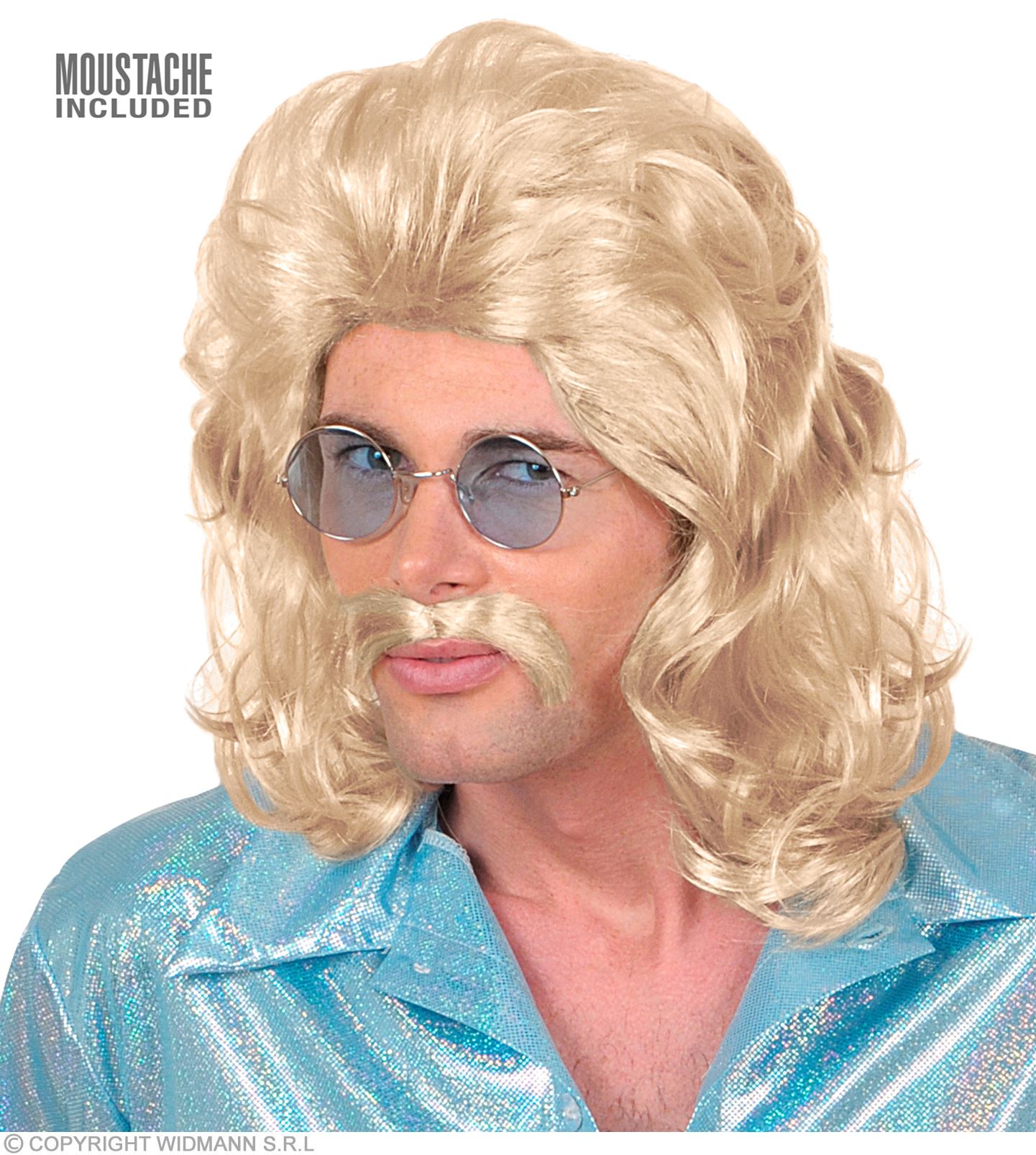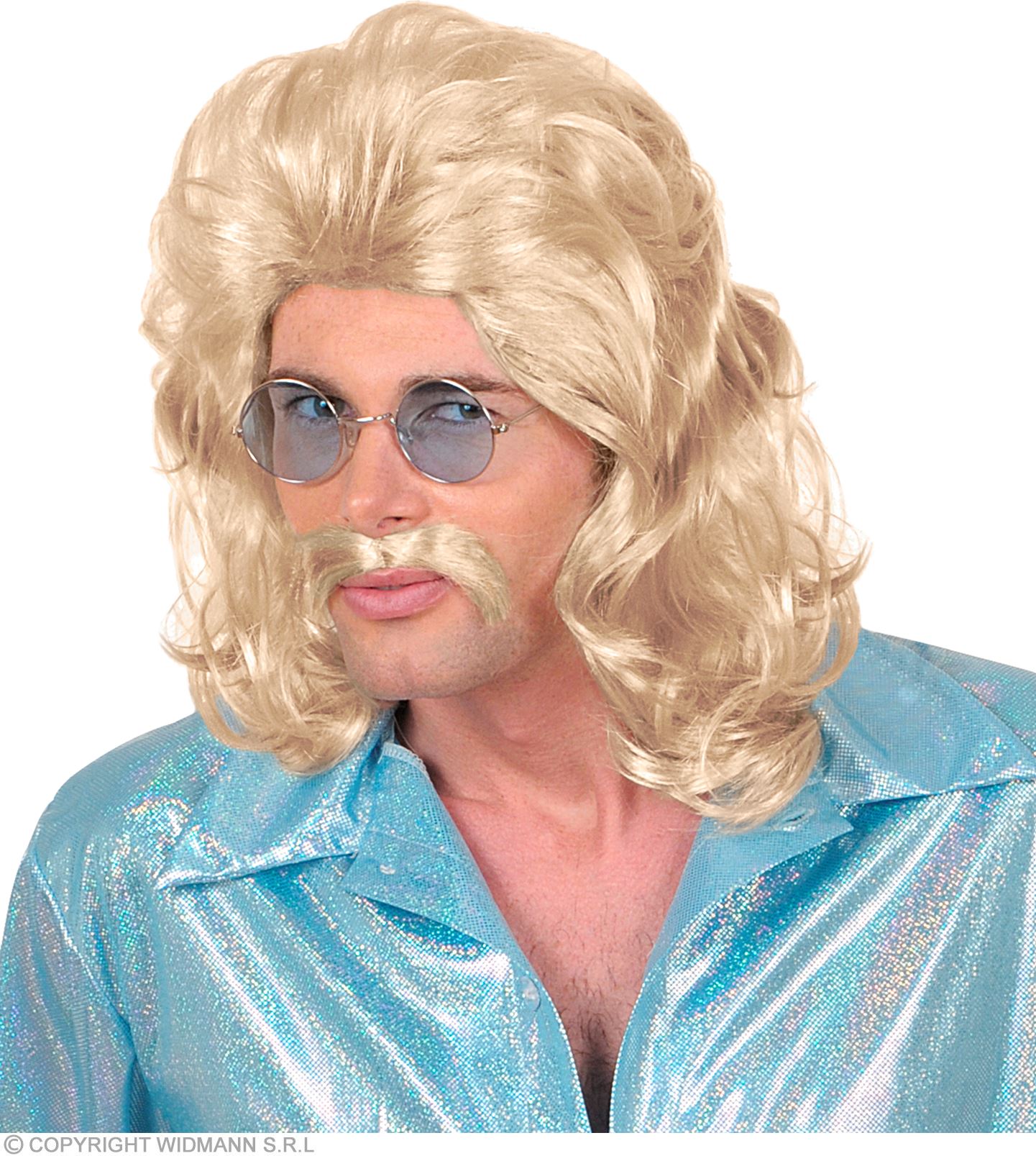 Accessorio Parrucca bionda e baffi anni 70