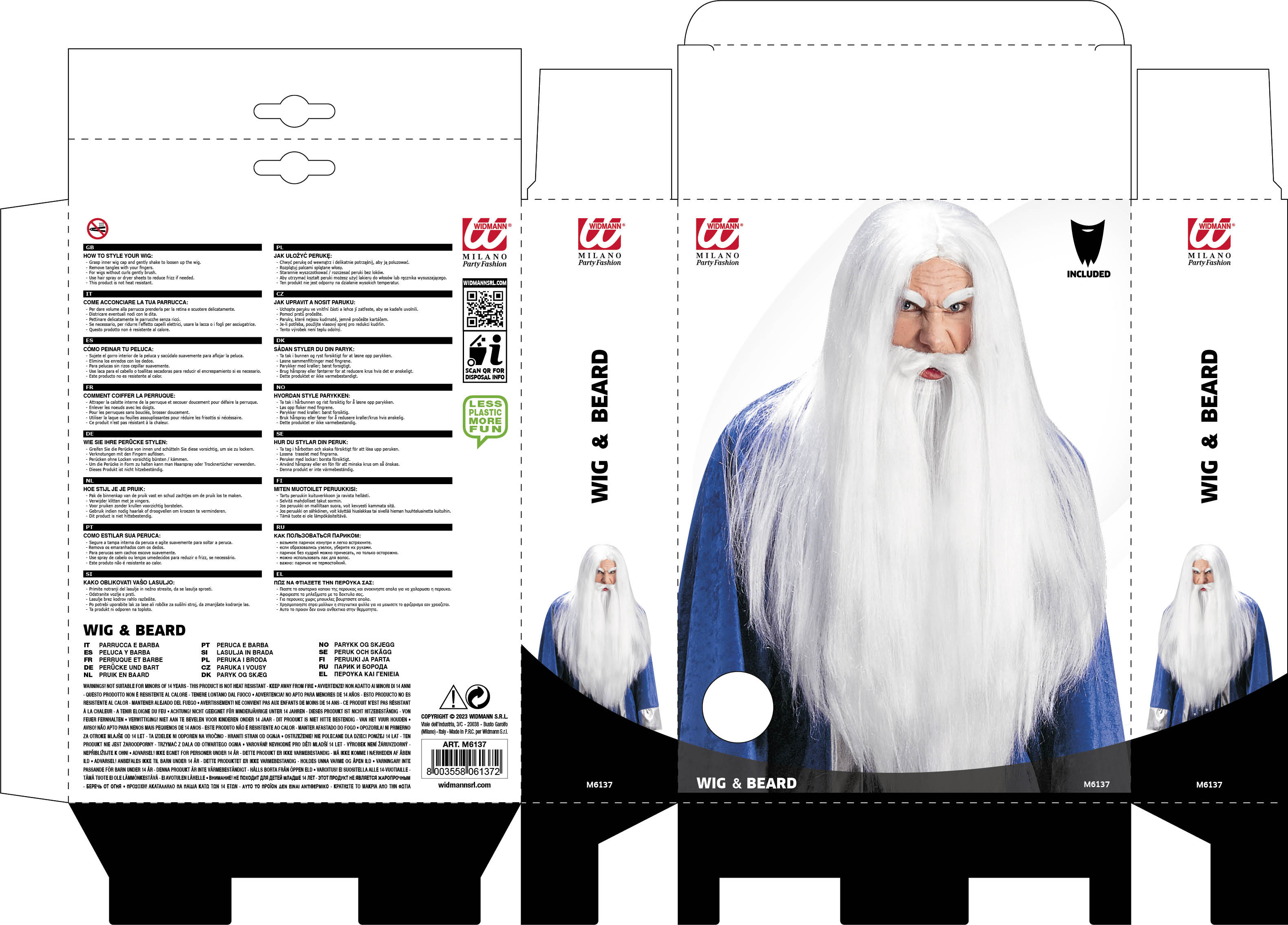PARRUCCA MAGO CON MAXI BARBA E BAFFIParrucche per adulti Costumi e accessori travestimenti Carnevale Halloween , cosplay