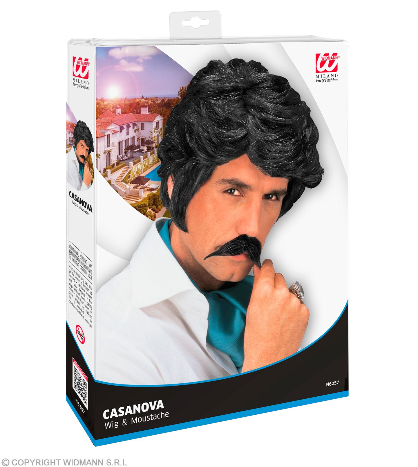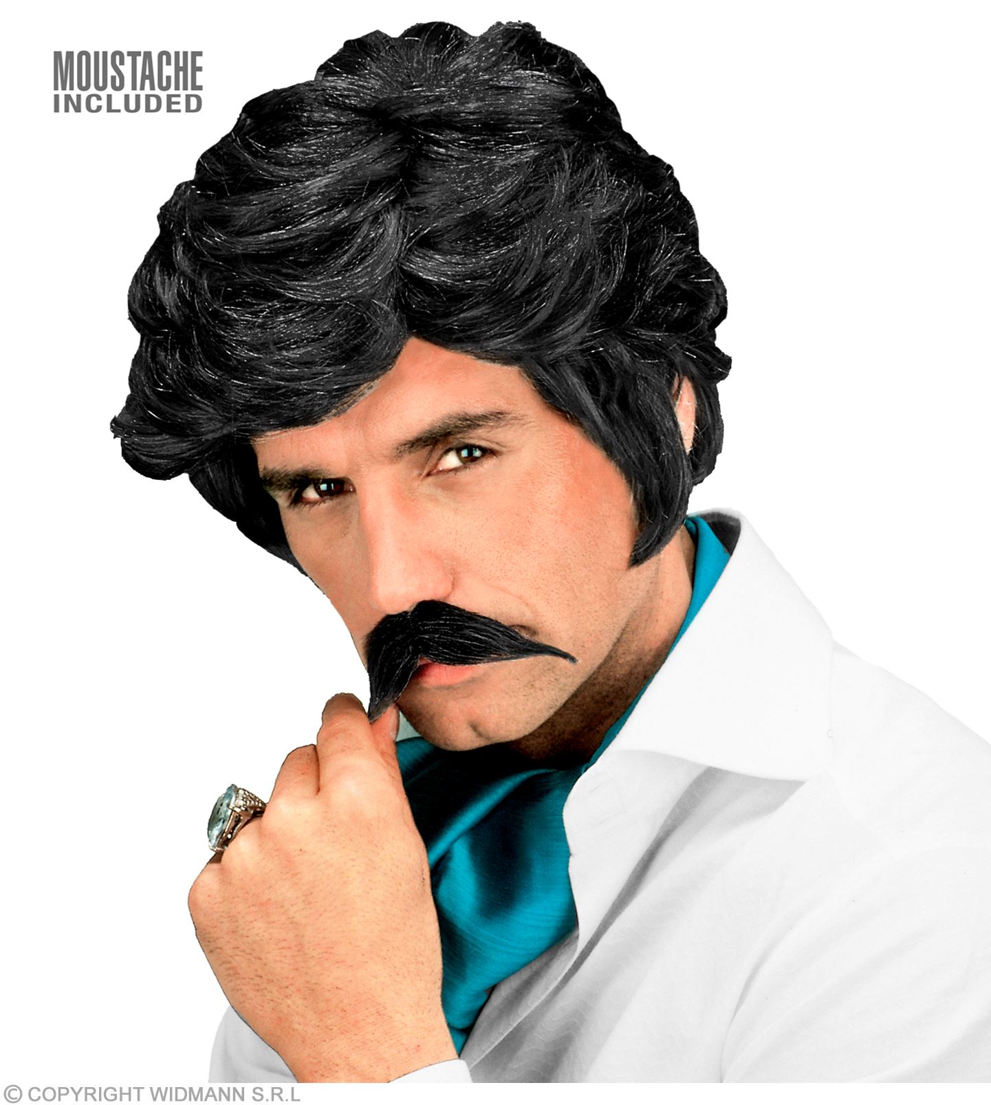 Parrucca nera da casanova con baffi